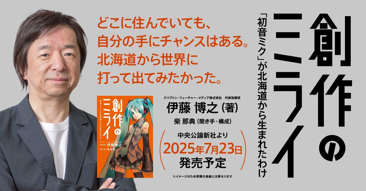 クリプトン・フューチャー・メディア株式会社(本社:北海道札幌市、代表取締役:伊藤博之、以下クリプトン)は、自社の設立30周年を記念して、当社代表である伊藤の著書『創作のミライ 「初音ミク」が北海道から生まれたわけ』を発売いたします。中央公論新社より2025年7月23日(水)に発刊予定で、全国の取扱い書店・オンライン書店にて予約が始まっております。