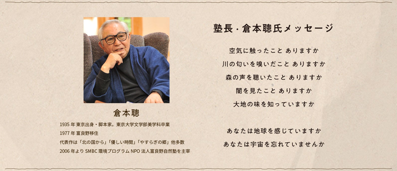 勝山自然塾のモデルである「富良野自然塾」は、脚本家倉本聰氏が主宰し、北海道富良野市の閉鎖されたゴル