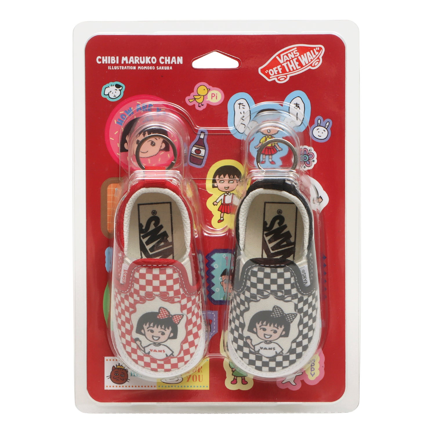 レトロな雰囲気のグラフィックのまる子が可愛らしいキーホルダータイプのスリッポン。