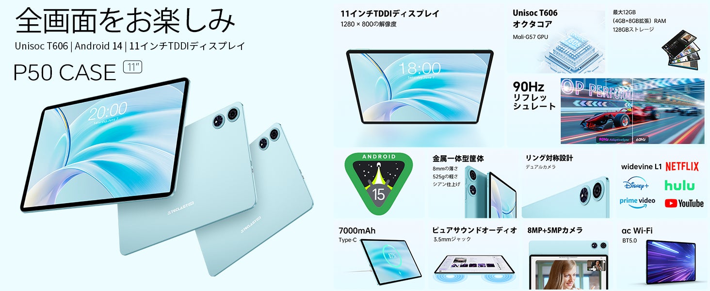 【特別版登場】Teclast大人気タブレットP50 Caseアップグレード!Android 15システム搭載、10種類の付属品が完備された。初回限定¥16,900円でお得に購入できます!