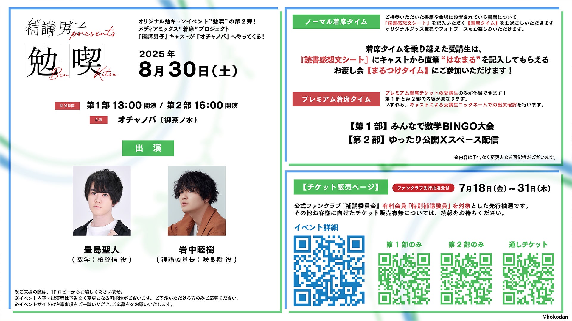 「『補講男子』presents 第2回 勉喫」開催概要を発表&チケット抽選受付開始!