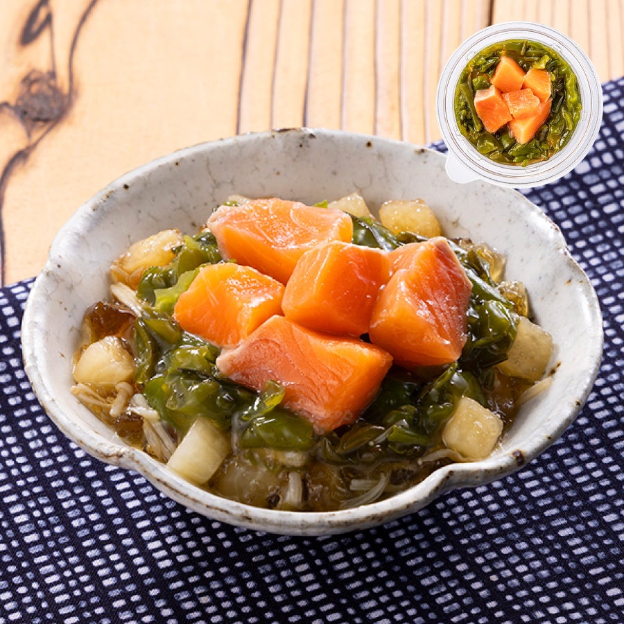 ■醤油ジュレで食べる三陸めかぶとサーモン