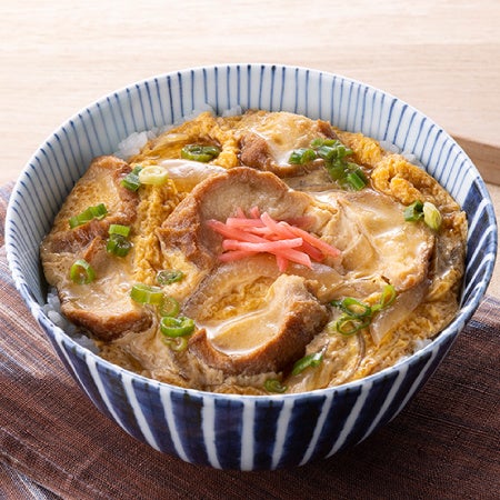宮城県登米市で昔から食べられている油麩丼。味が染みた油麩から、出汁の旨みやコクが感じられる商品です。