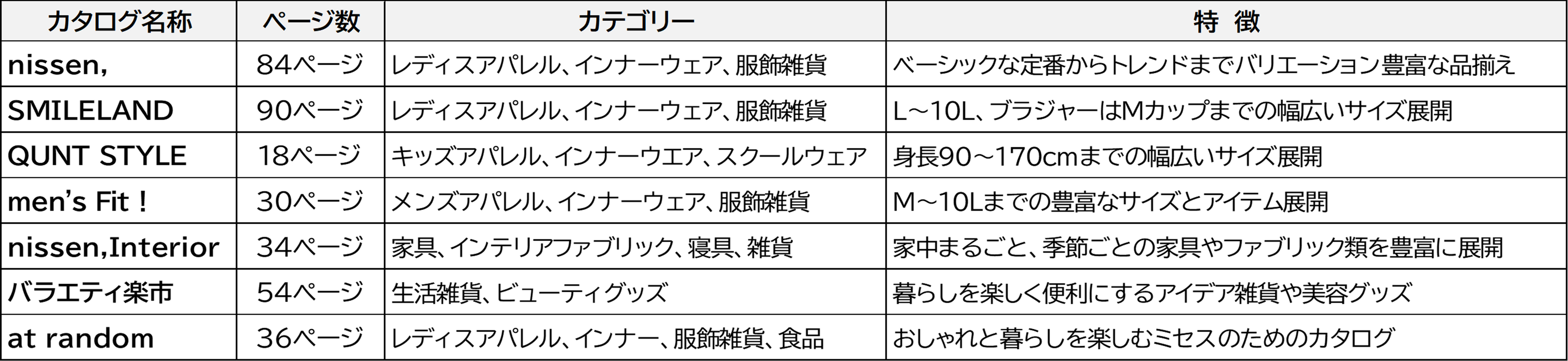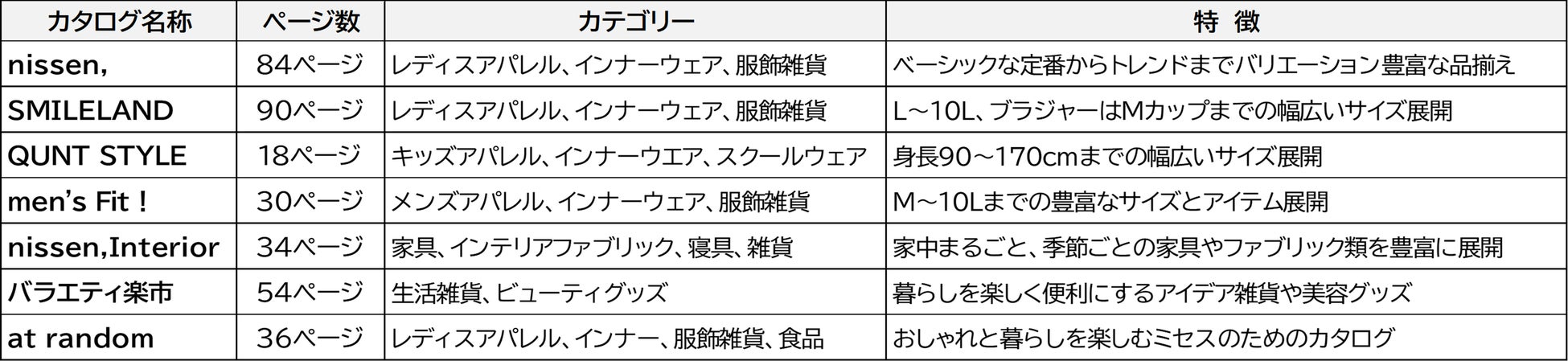 株式会社ニッセン(本社:京都市南区、代表取締役社長:羽渕淳)は、秋の新作商品を掲載したカタログ7誌を、8月23日(水)に発行。デジタルカタログをニッセンオンラインショップ(https://www.nissen.co.jp/)で公開いたしました。
