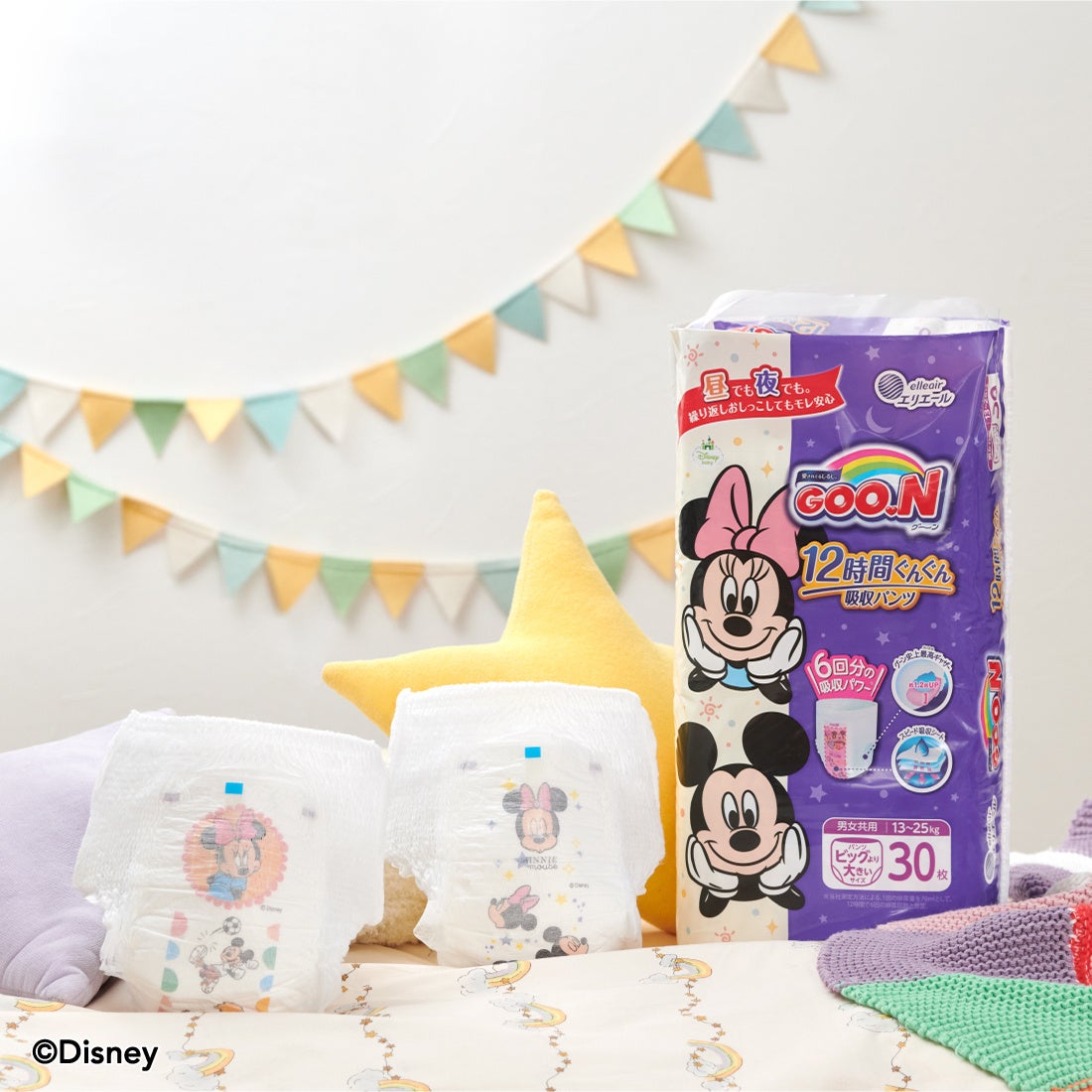 昼と夜で異なるディズニーデザインで、毎日のおむつ替えをもっと楽しく♪
