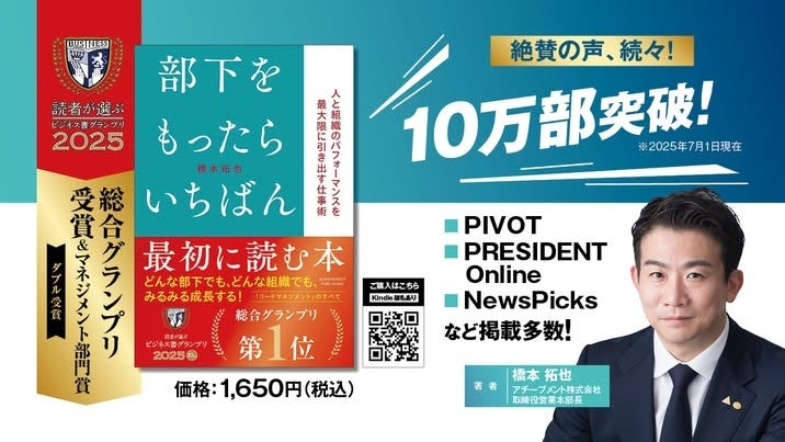 アチーブメント株式会社の取締役 橋本拓也による著書『部下をもったらいちばん最初に読む本』が『読者が選ぶビジネス書グランプリ2025』にて総合グランプリおよびマネジメント部門賞の2冠に輝き、発行部数10万部を突破しました 。このヒットの背景には、「責任だけが増え、やりがいが見合わない」と感じる管理職の急増や、もはや通用しなくなった旧時代のマネジメント手法への警鐘、そして、これからのリーダーが本当に求めていた答えがあります。