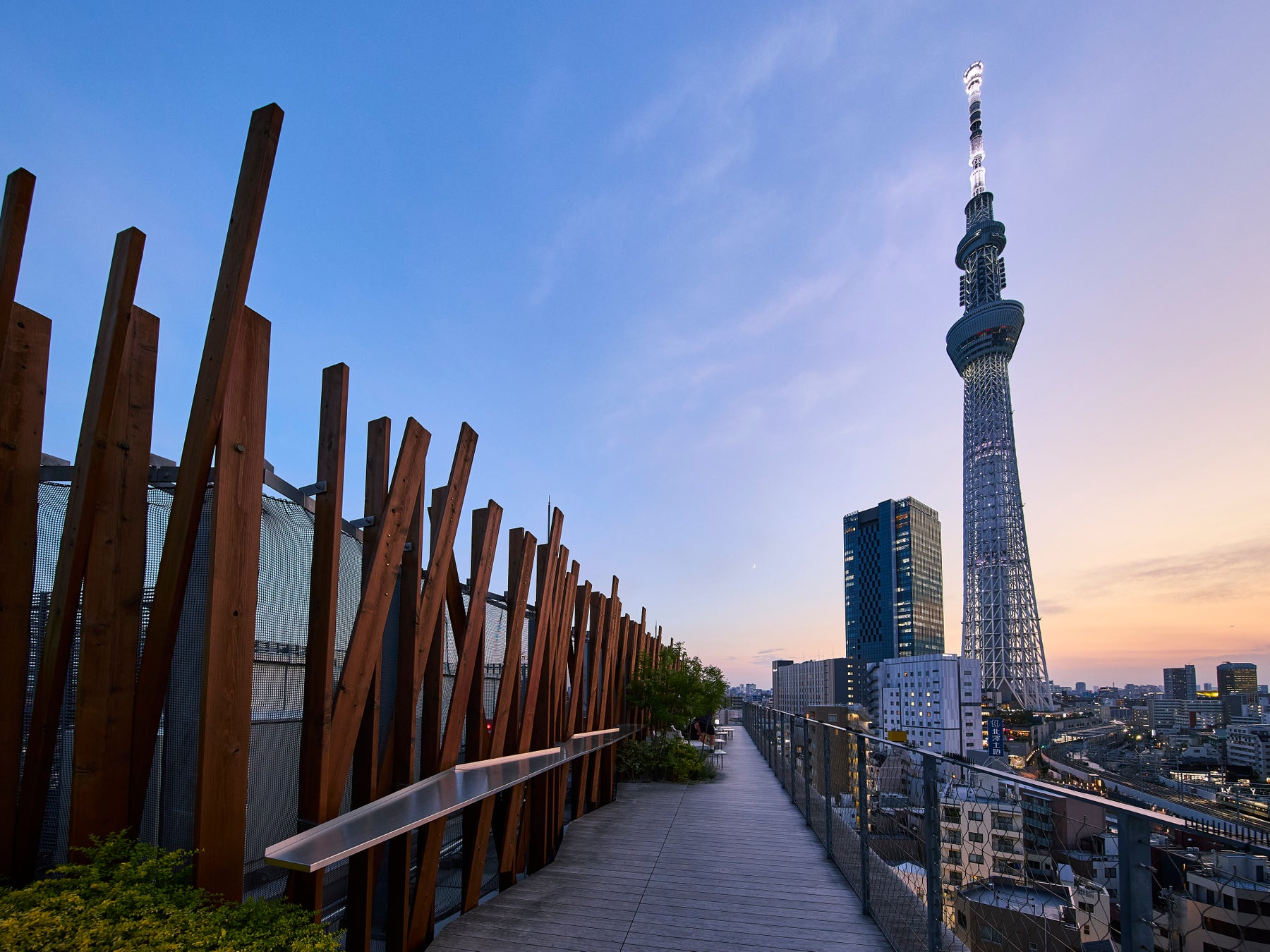 東京スカイツリー®を目前に楽しめるルーフトップには180°のパノラマビューが広がり、まるで東京の風景を切り取った絵画のように、一つひとつの景色を楽しめます。空に一番近い屋上空間でくつろぎ、ここにしかない景色をご堪能ください。