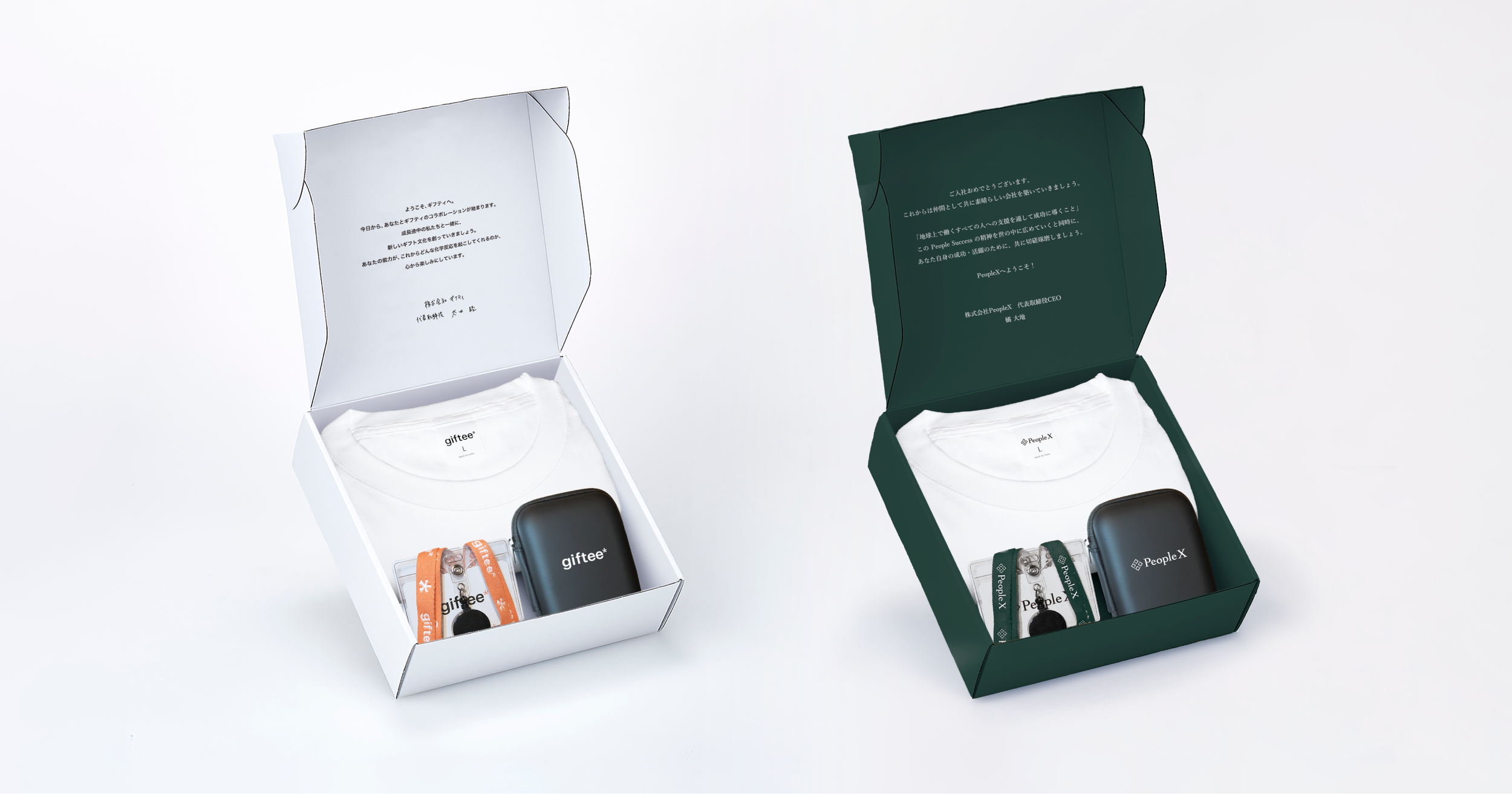 eギフトプラットフォーム事業(※1)を展開する株式会社ギフティ(本社:東京都品川区/代表取締役:太田 睦、鈴木 達哉/以下、ギフティ)は、企業が取引先や顧客、従業員に対して関係性構築・関係性強化を目的として感謝の気持ちを表すために贈るギフトである「Corporate Gift(コーポレートギフト)」領域で、エンプロイーサクセス事業を推進する株式会社PeopleX(本社:東京都渋谷区/代表取締役CEO:橘 大地/以下、PeopleX)と協業を開始いたしました。また、その第一弾の取り組みとして、ギフティが展開するギフトプランニングのプロフェッショナルチーム「STUDIO GIFTEE(スタジオ ギフティ)」とPeopleXが展開する社員向けエンゲージメントギフトサービス「PeopleGift」が共同開発した、企業が新入社員に贈るオリジナルデザインのロゴ入りアイテムをパッケージ化した「ウェルカムボックス」(※2)の提供を2025年1月15日(水)より開始いたしましたので、お知らせいたします。