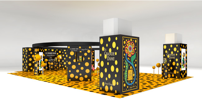ヴーヴ・クリコと草間彌生氏が織りなすクリコイエローに彩られた空間を、どうぞお楽しみください。