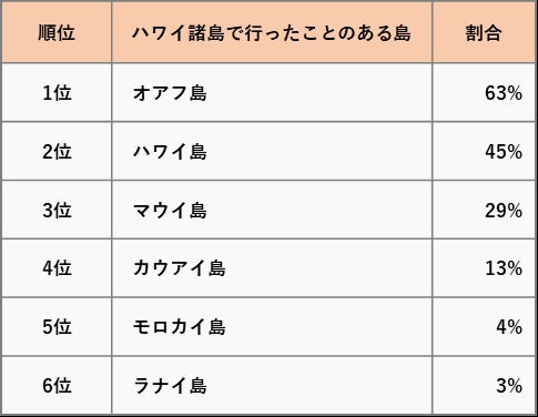 ハワイ旅行の経験者に、ハワイ諸島のどの島に行ったことがあるかを聞いてみました。