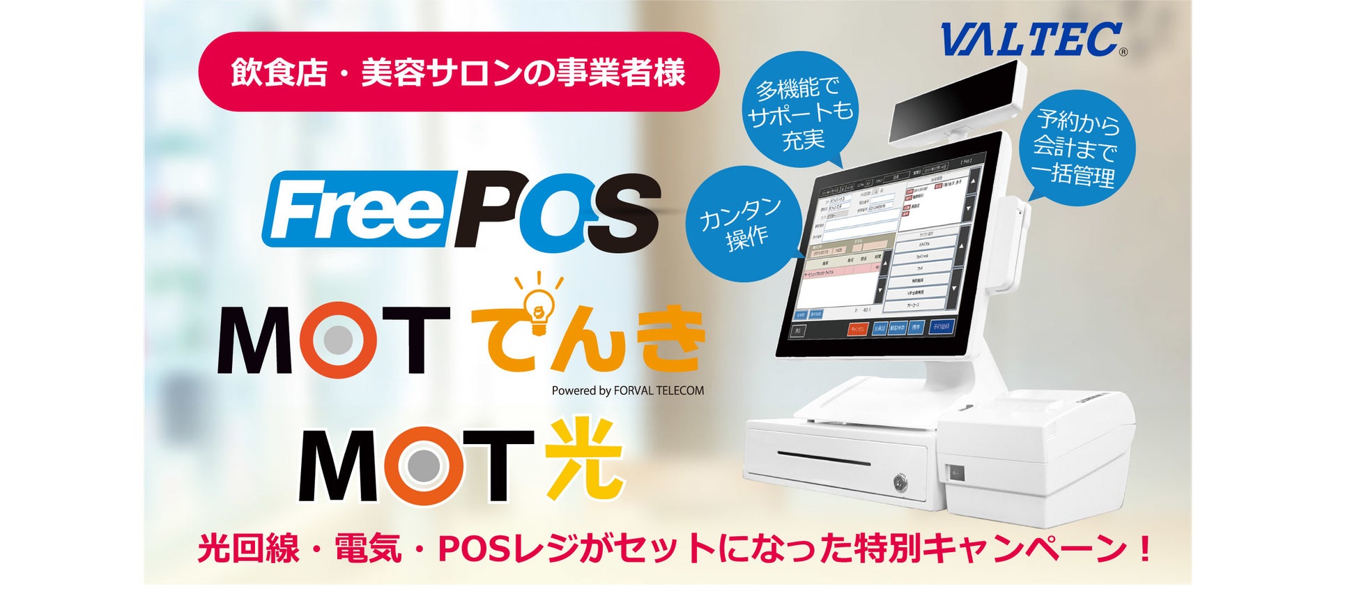光回線(MOT光)・電力サービス(MOTでんき)をご契約いただいた方を対象に、POSレジシステムの設置費用が0円に。感染症による影響を受けた事業者様の事業継続に貢献します。