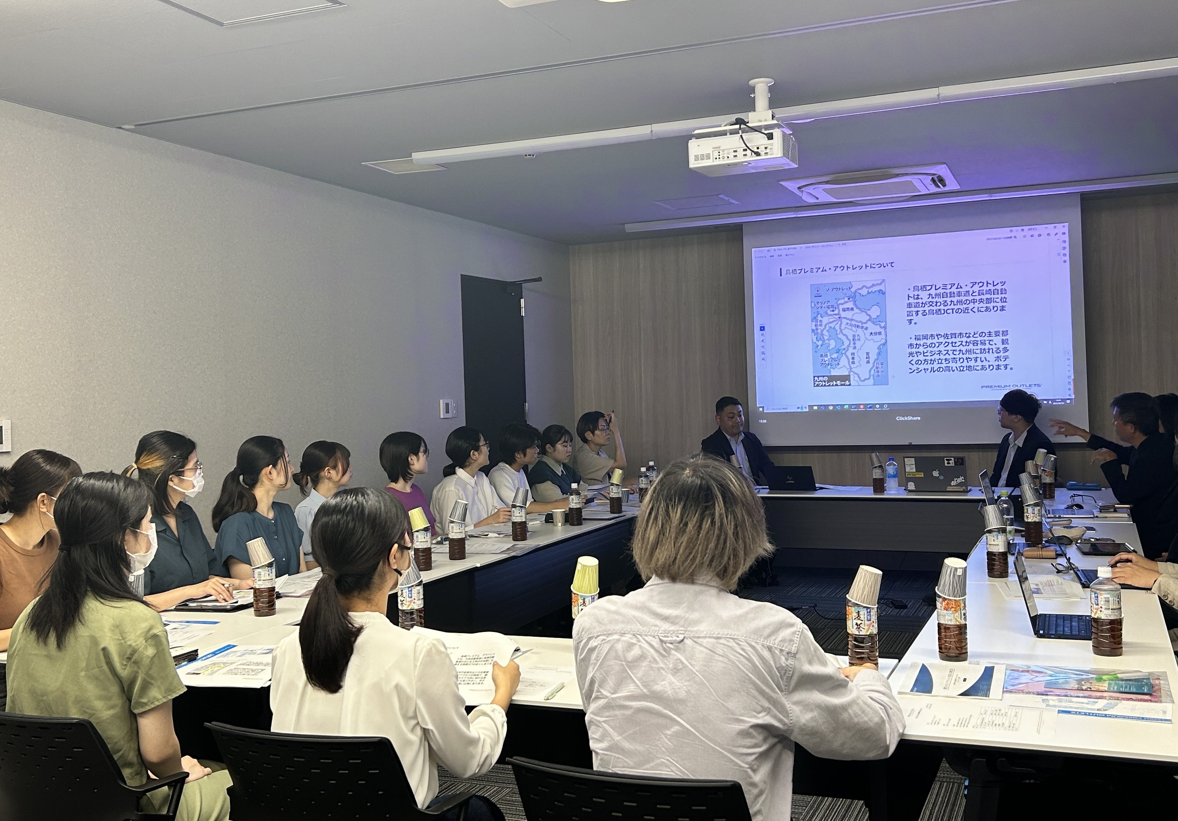 プロジェクトのスタートとして、9月30日(月)に鳥栖プレミアム・アウトレットおよび船場より、学生12名へのオリエンテーションと意見交換が行われました。