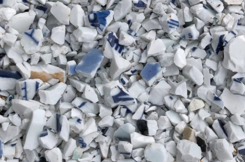 有田焼の茶碗に感謝を伝え供養を行う「ちゃわん供養」の一環として、役目を終えた茶碗をチップ状に粉砕加工して生まれたアップサイクル建材を使用します。