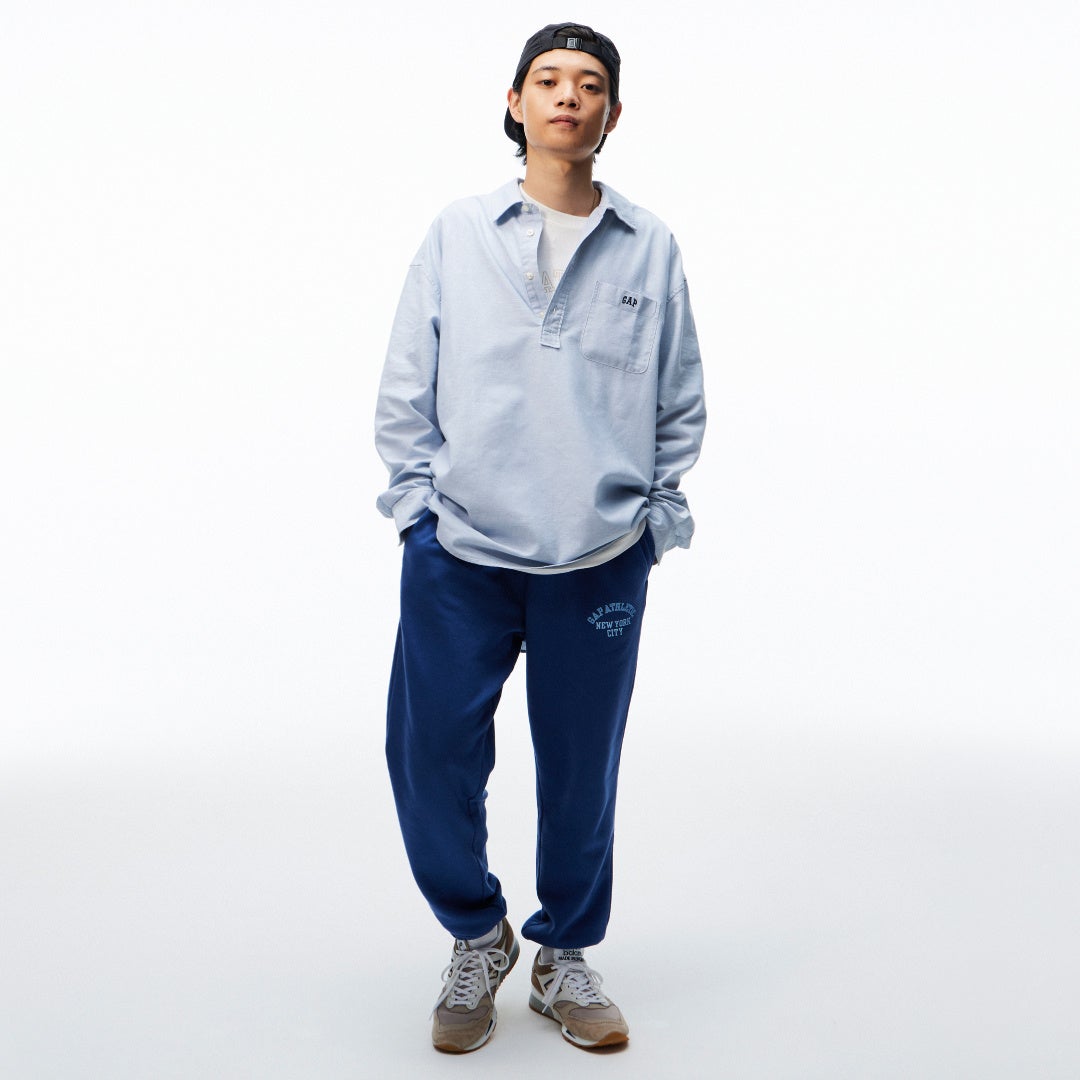着用アイテムは、ロゴのワッペンがついたスウェットカーディガンや、ポップオーバータイプのオックスフォードシャツ、ラグランスリーブのロゴTシャツ、程よいワイド感とテーパードが魅力のバギーデニム等、モダンに進化したGapのアイコニックなNEWアイテムをヒーローに、日本のトレンドに合わせた抜け感のあるスタイリングで、Gapらしいシンプルでクールなコレクションの魅力を発信していきます。