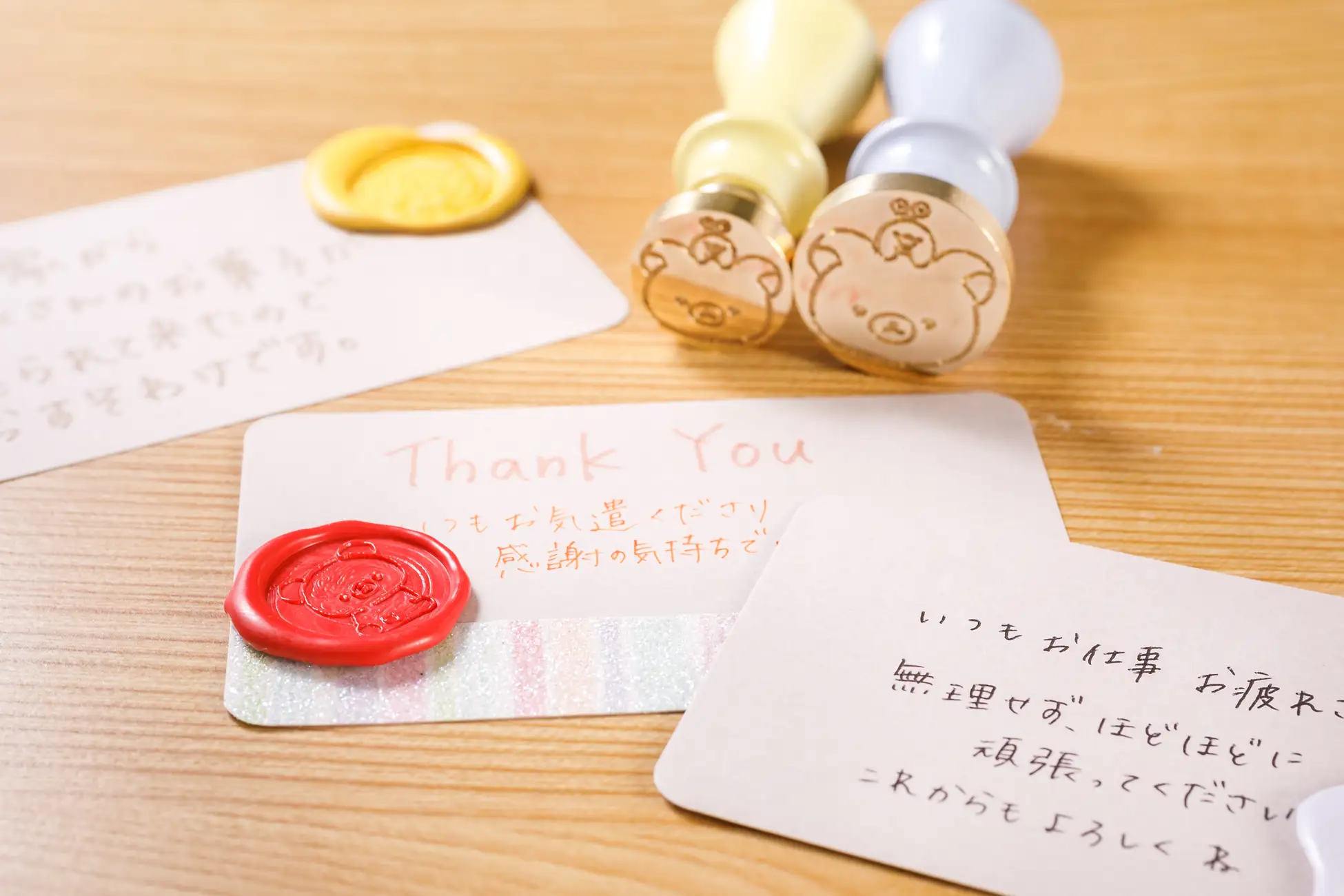 「リラックマ シーリングスタンプセット」は、「ハンドメイド雑貨づくりに使えるハンコは作れませんか?」というお客様からの声にこたえて企画したはんこ。2022年11月の発売開始からたいへんご好評をいただいています。大人も子どもも大好きなリラックマのキャラクターを付属のワックスに刻印することで、とってもキュートなハンドメイド雑貨づくりを楽しむことができます。