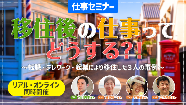 「移住後の仕事ってどうする?!~転職・テレワーク・起業により移住した3人の事例~」