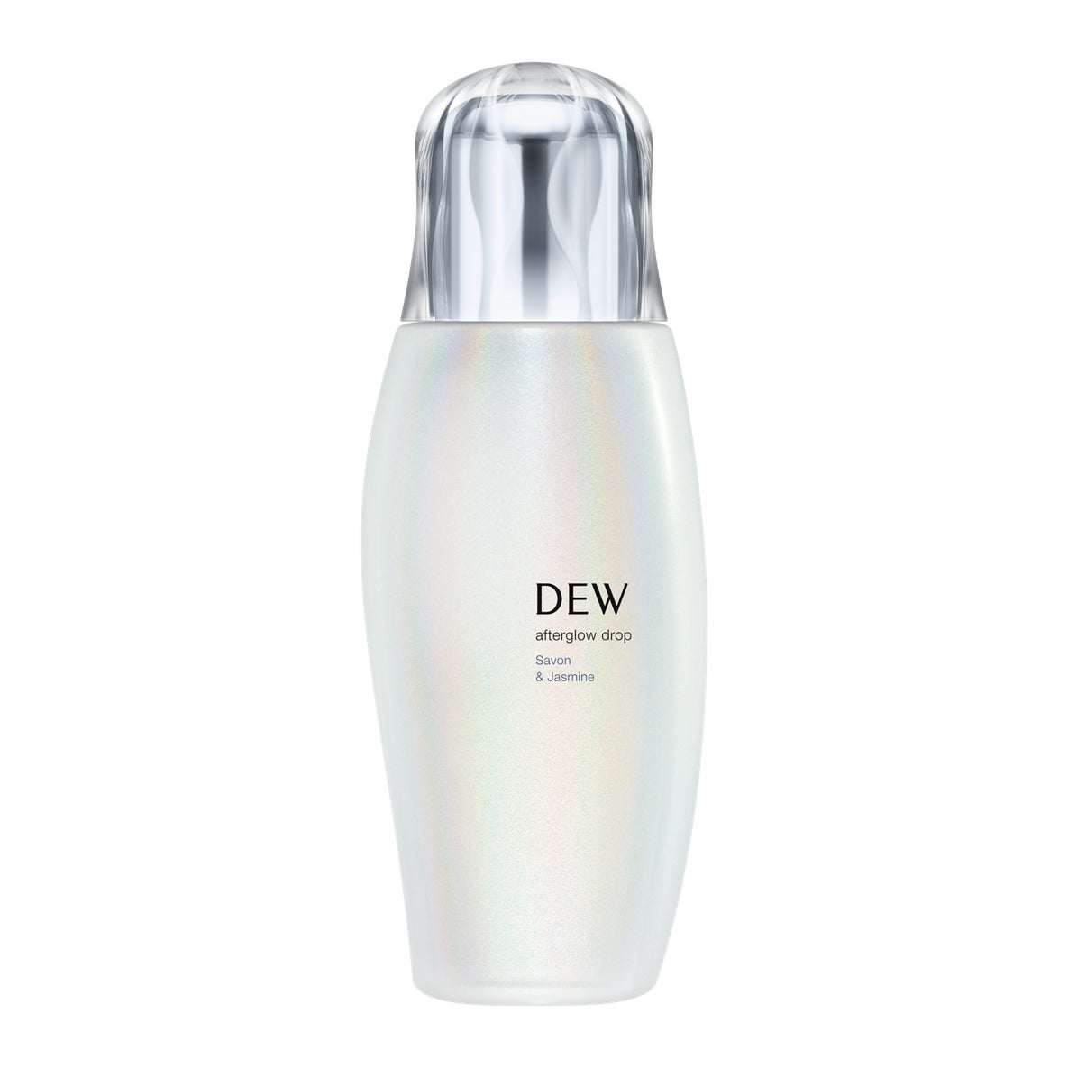 なかでも「DEW アフターグロウドロップ」はその名の通り、ひたひたとしたうるおいの「余韻=AFTERGLOW」に満たされるうちに、濃密なとろみ液が肌表面でぴったり密着する保水膜に変化し、長時間うるおいを与え続ける濃密セラム化粧液で、まさに「DEW」の世界観を表現するメインアイテムです。