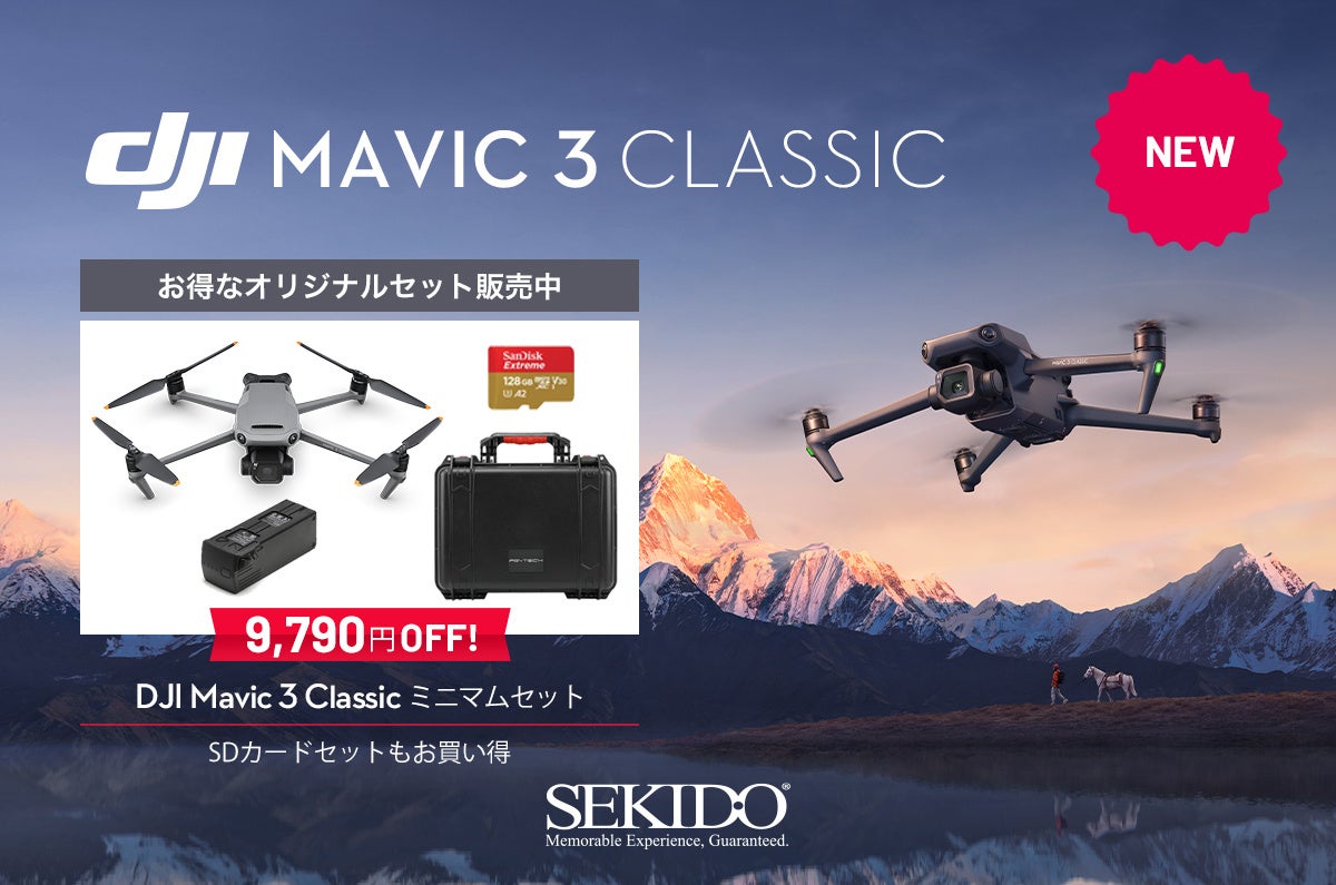 Hasselblad(ハッセルブラッド)カメラと安全でパワフルな飛行性能を持つ DJI Mavic 3 Classic で、シンプルにより長く空撮が楽しめる「DJI Mavic 3 Classic(DJI RC付属)ミニマムセット」と、高画質空撮に欠かせないメーカー推奨の microSDカード付セットは、皆さんにおすすめのお買い得なセット商品です。