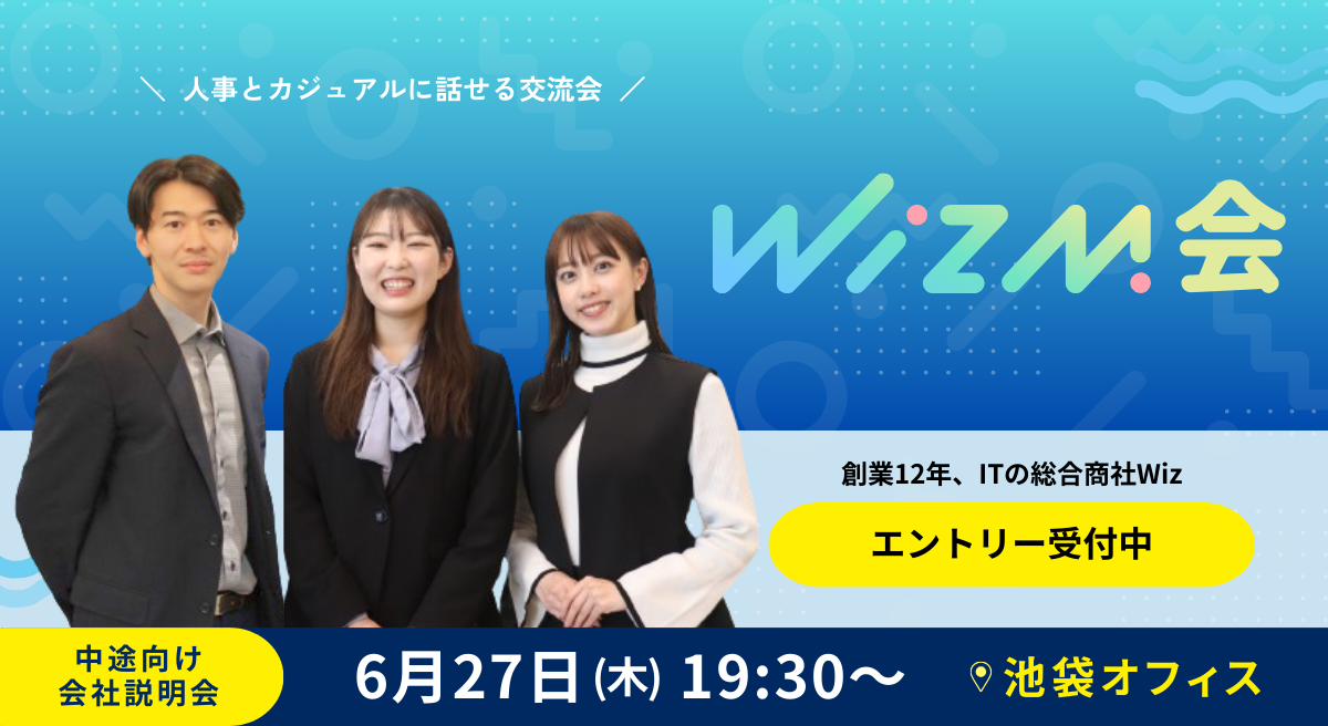 【第二新卒・転職希望者 大歓迎!】人事とカジュアルに話せる交流会『Wizm会』を6/27(木)に開催!