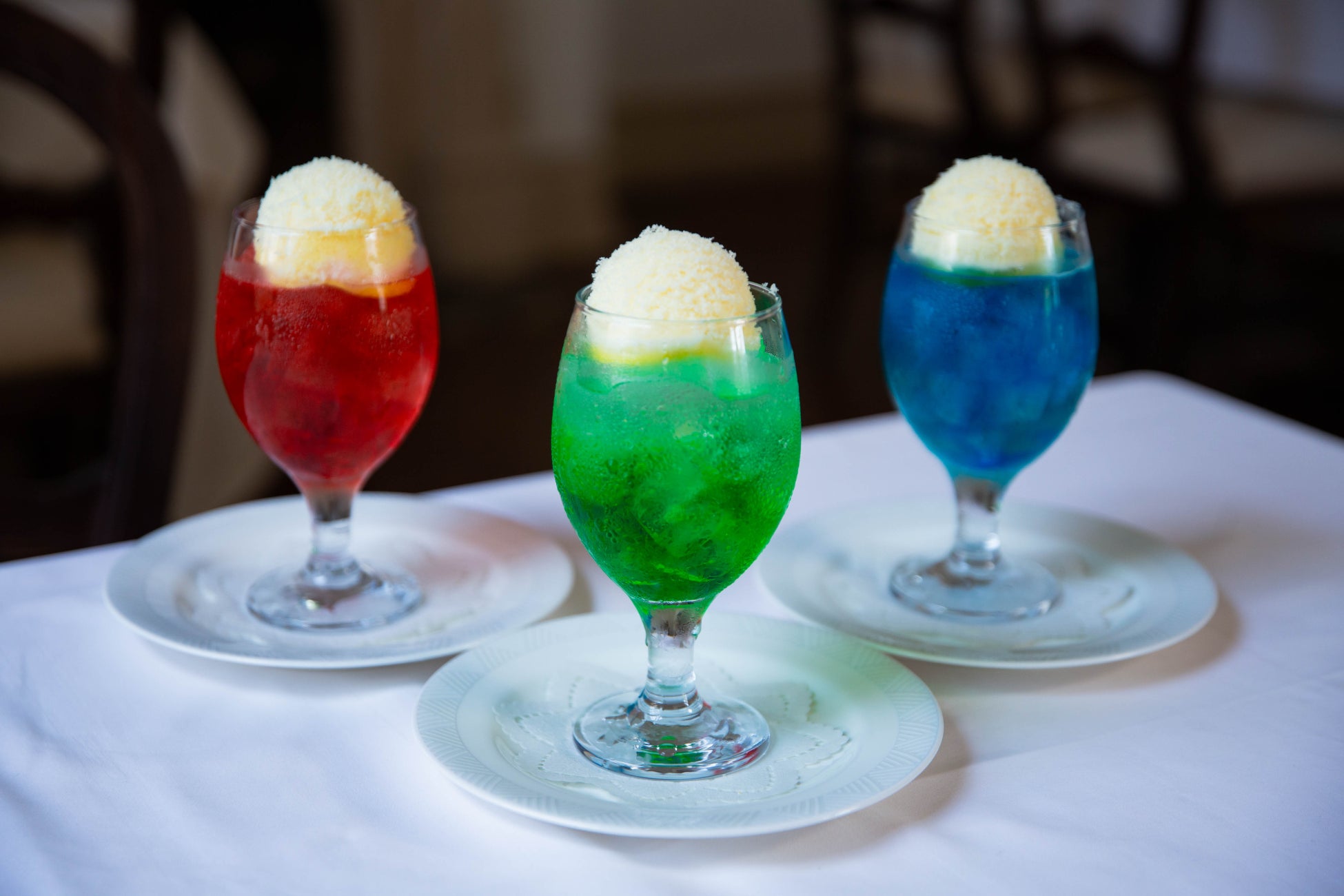 定番のメロンクリームソーダに加え、ピーチの甘みとザクロの美しい酸味を愉しむレッドやシトラスの爽快なフレーバーを愉しむブルーの3種をご用意しました。