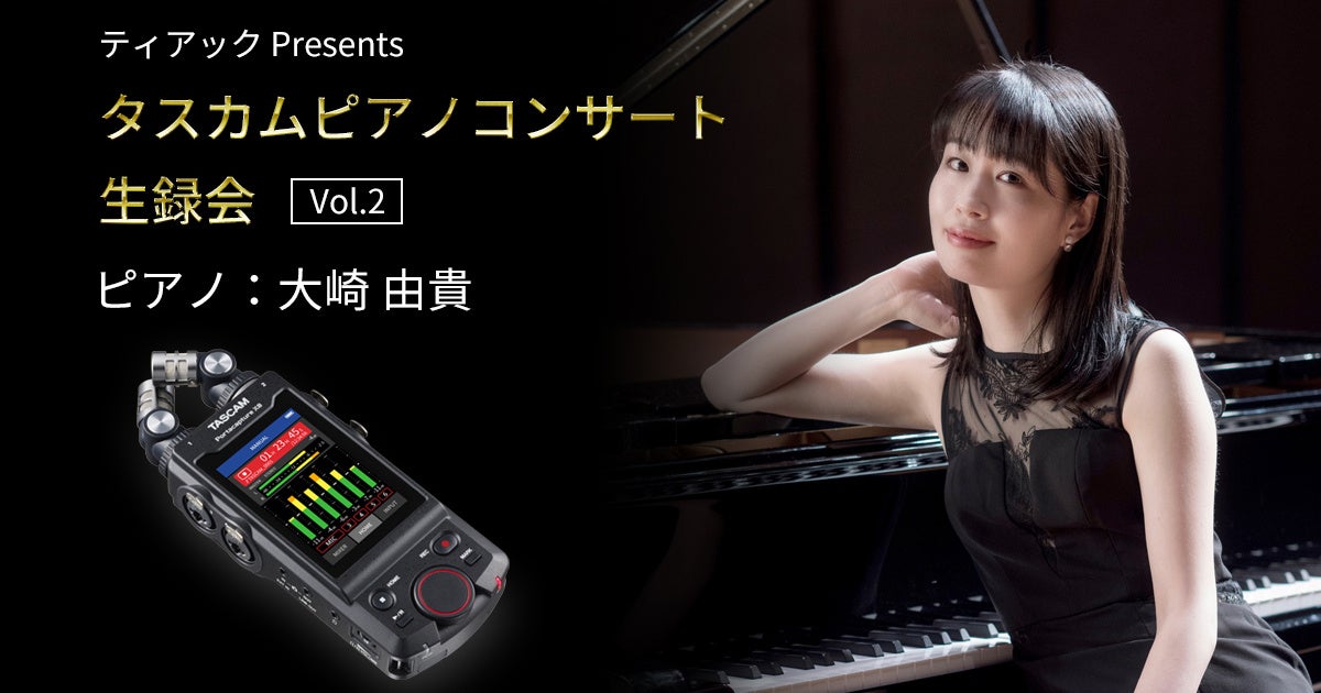 プロの演奏を気兼ねなく録音したいというお客様のご要望にお応えする形で昨年開催した『ティアック Presents タスカムピアノコンサート』は大変ご好評をいただきました。ご参加いただいたお客様からの熱いご要望をいただいたことで、この度『TASCAMピアノコンサート録音会 vol.2』を開催いたします。このコンサートではお客様ご自身のレコーダーを持ち込んでいただき、ピアニストによる演奏の録音を心行くまで楽しんでいただけます。