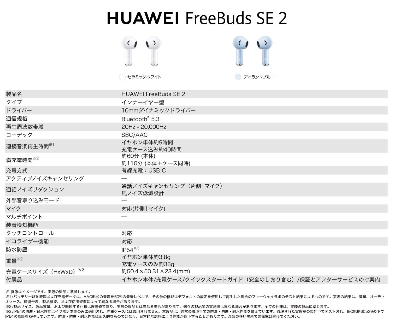 『HUAWEI FreeBuds SE 2』の主な仕様