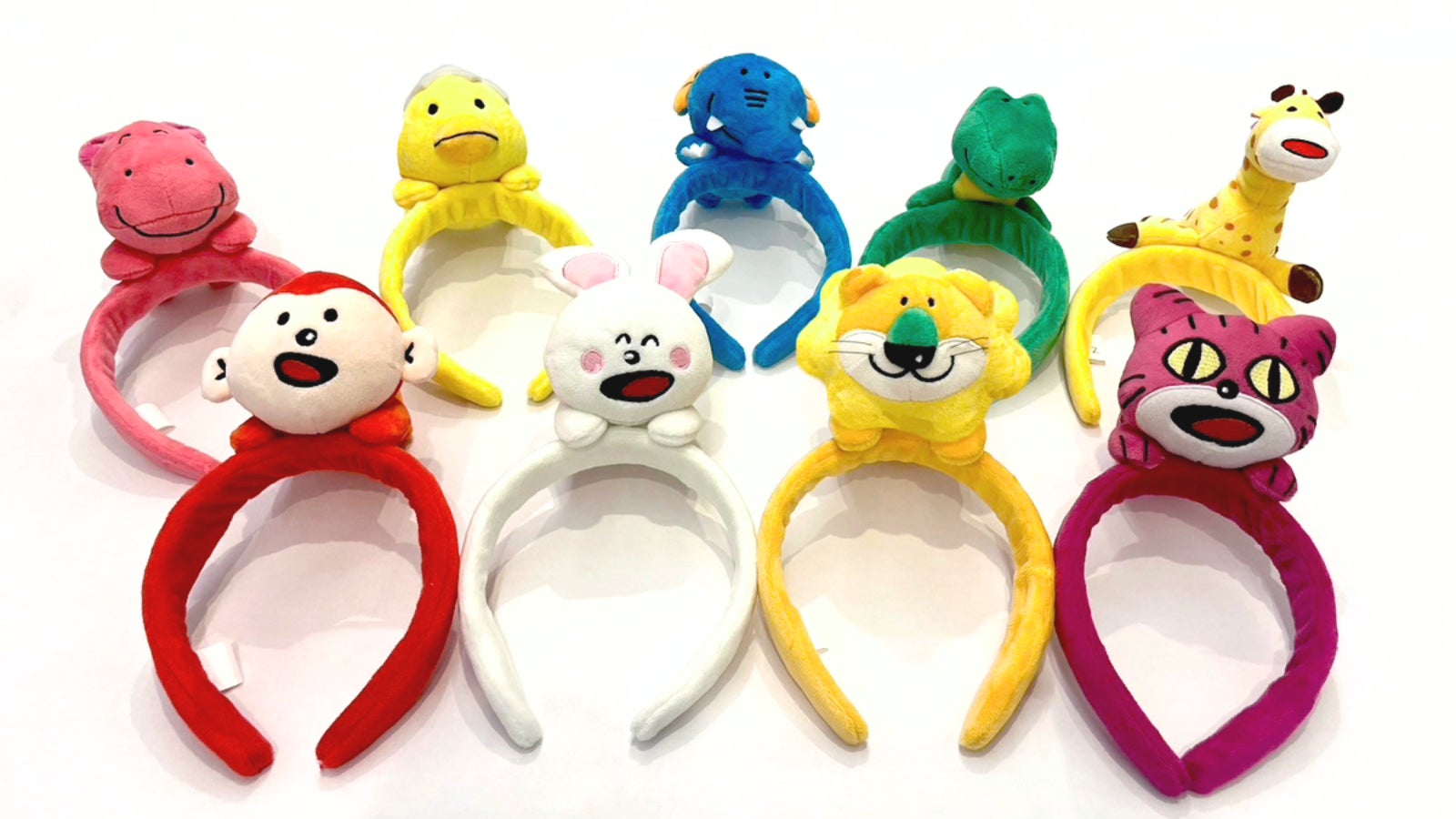 カチューシャには2種類あり、どうぶつの耳をモチーフにした「おみみカチューシャ」と、どうぶつのぬいぐるみが付いた「ぬいぐるみ付きカチューシャ」をそれぞれのどうぶつで展開(※わに・ひよこのみ「ぬいぐるみ付きカチューシャ」のみの展開となります)。