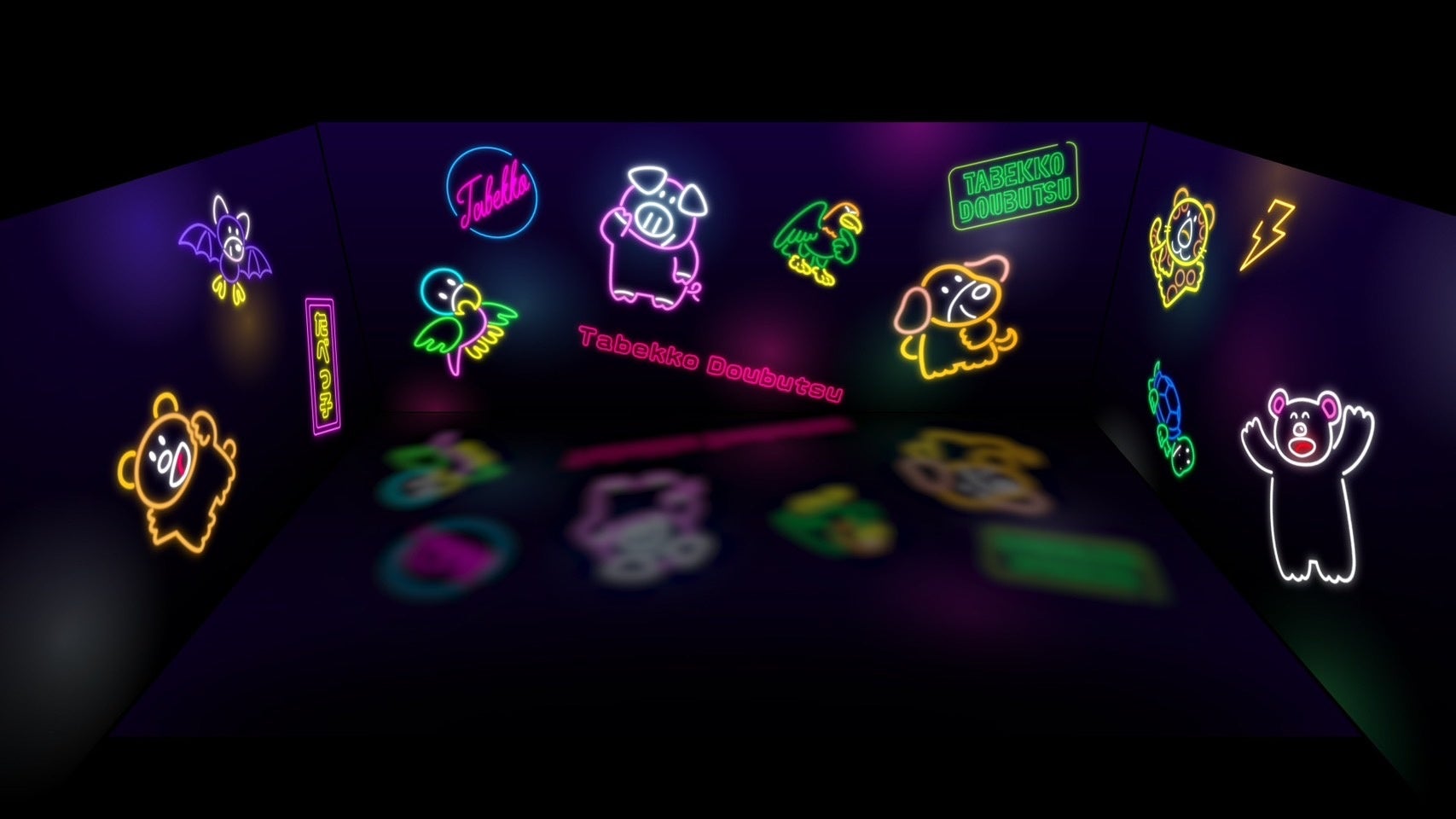 360°に広がったプロジェクションマッピングに、ネオン調や星座風に描かれたキラキラ輝く「たべっ子どうぶつ」のどうぶつたちが登場し、「たべっ子どうぶつ」の世界に没入する新たな体験をお楽しみいただけます。