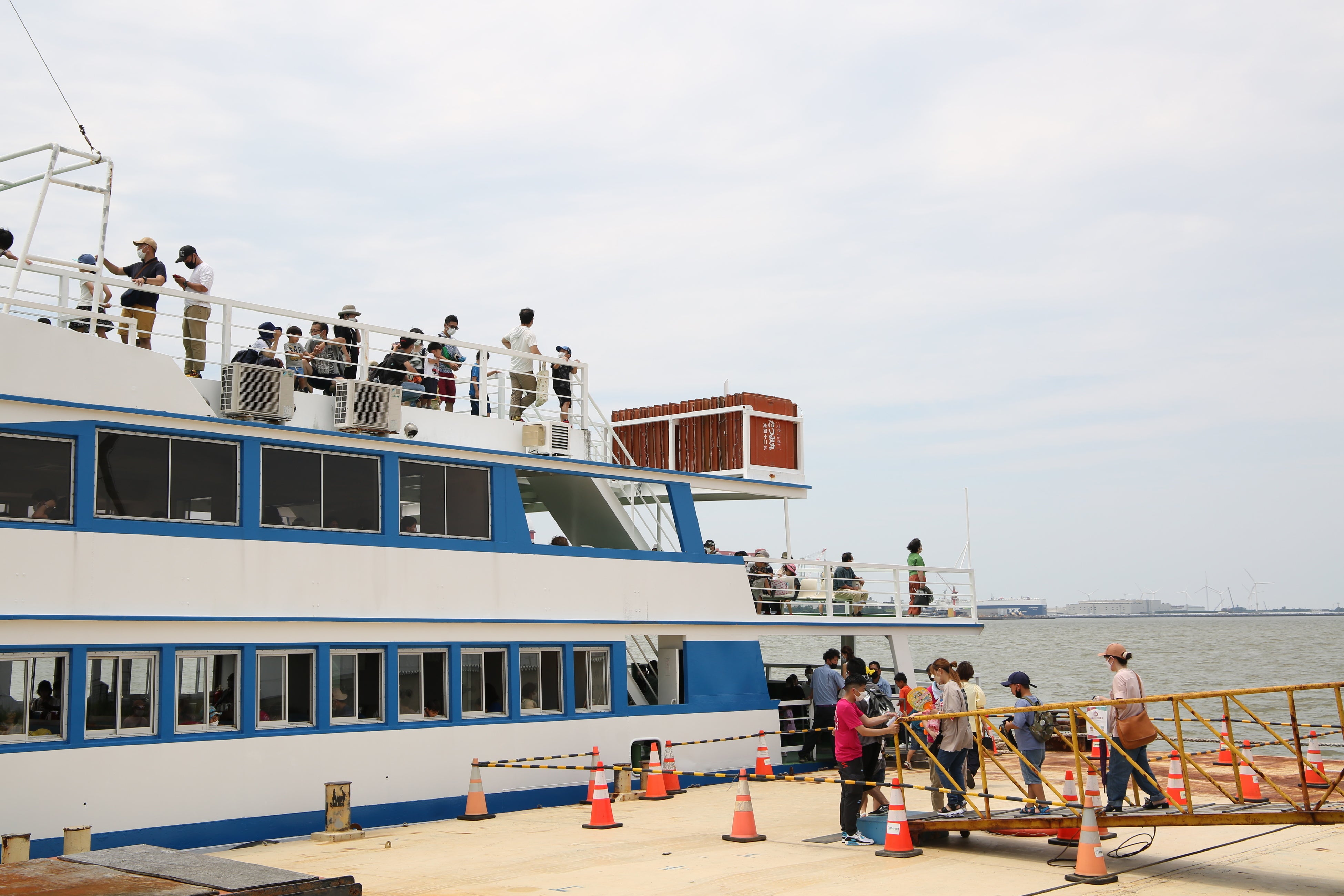カモメリア近くの岸壁は、遊覧船「たつみ丸」による三河港クルーズの発着場所になります。出発時間は午後4時、5時、6時の3回で、約30分のクルーズを楽しみます。定員は各回472人、当日、先着順です。乗船料は中学生以上400円、小学生200円、未就学児無料。午後3時半から乗船券の販売が始まります。