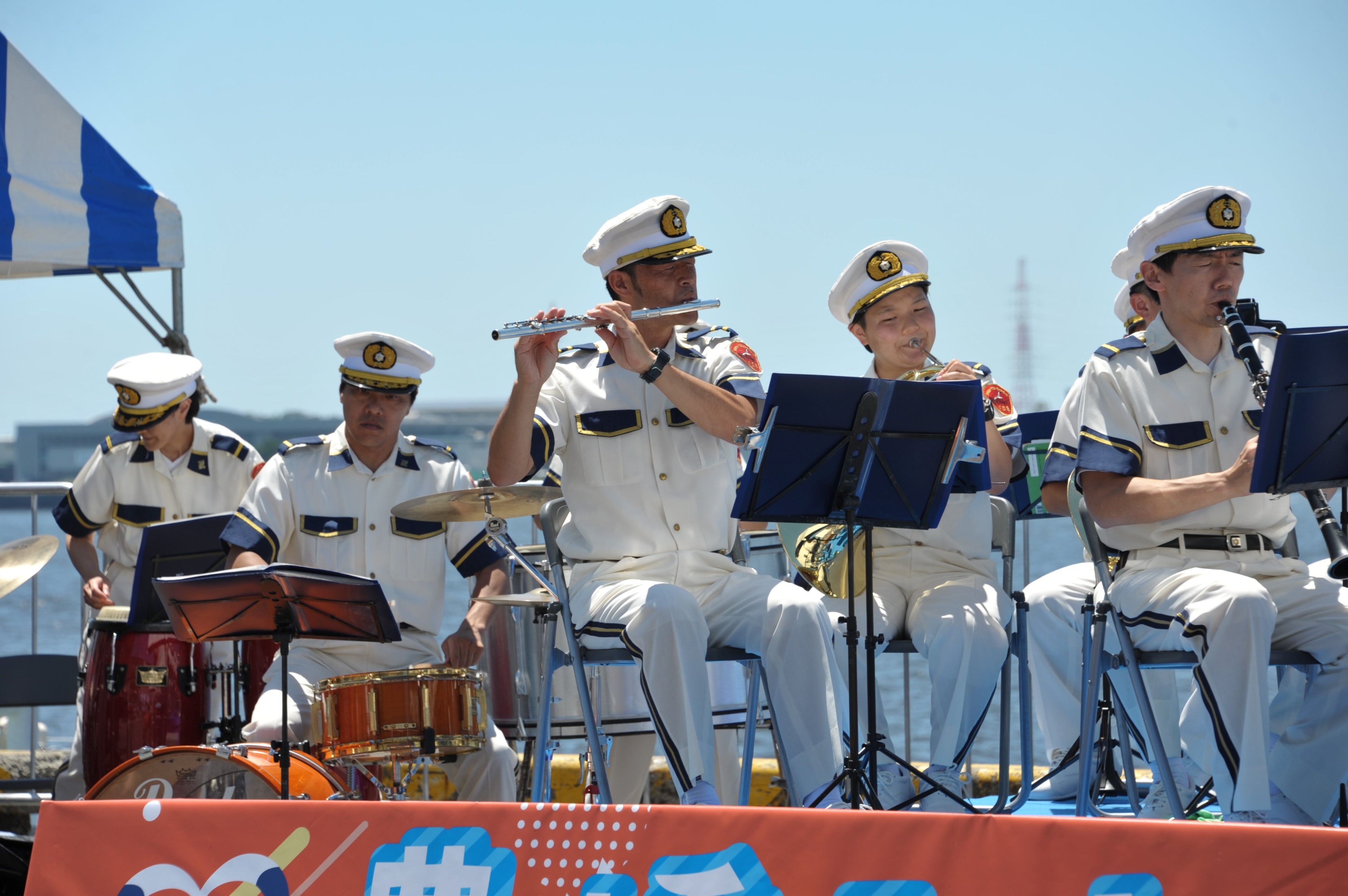また、マリンステージが設けられ、オープニングのほか、恒例の海洋少年団の手旗パフォーマンス、消防音楽隊や和太鼓の演奏が行われ、一日港長の任命式もあります。