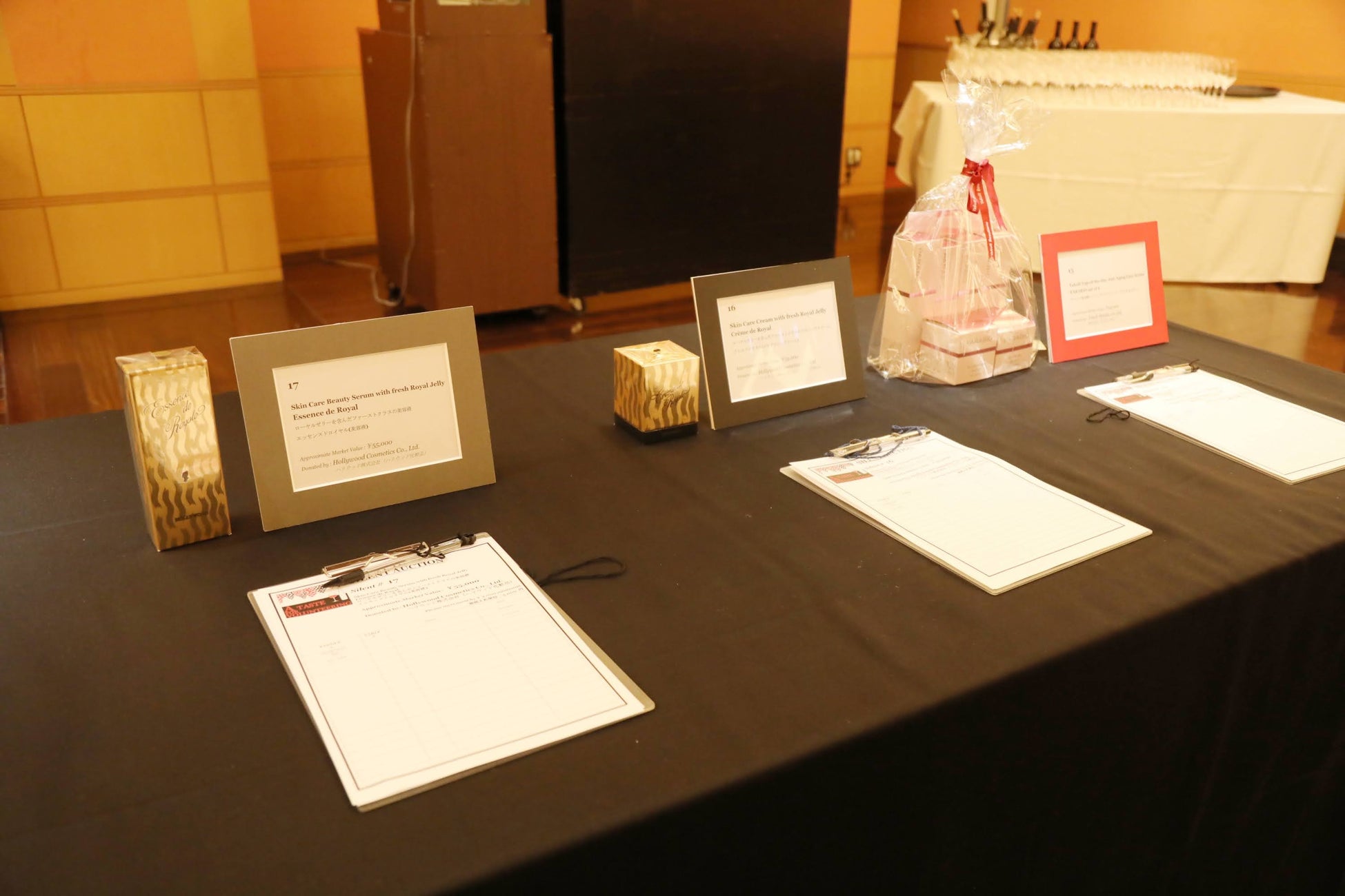 このハンズオン東京主催のガラ・イベントは、国際色豊かに欧米のボランティア文化にならったスタイルで、参加者がオークションやラッフルを楽しむことで得た収益金が、寄付に充てられるイベントです。ハリウッドはハンズオン東京の日頃の活動主旨に賛同し、このガラ・イベントに相応しい商品として、創業者夫人・美容家のメイ牛山が考案し、自身も愛したスペシャルケア「エッセンス ド ロイヤル」と「クレムドロイヤル」を協賛出品いたしました。