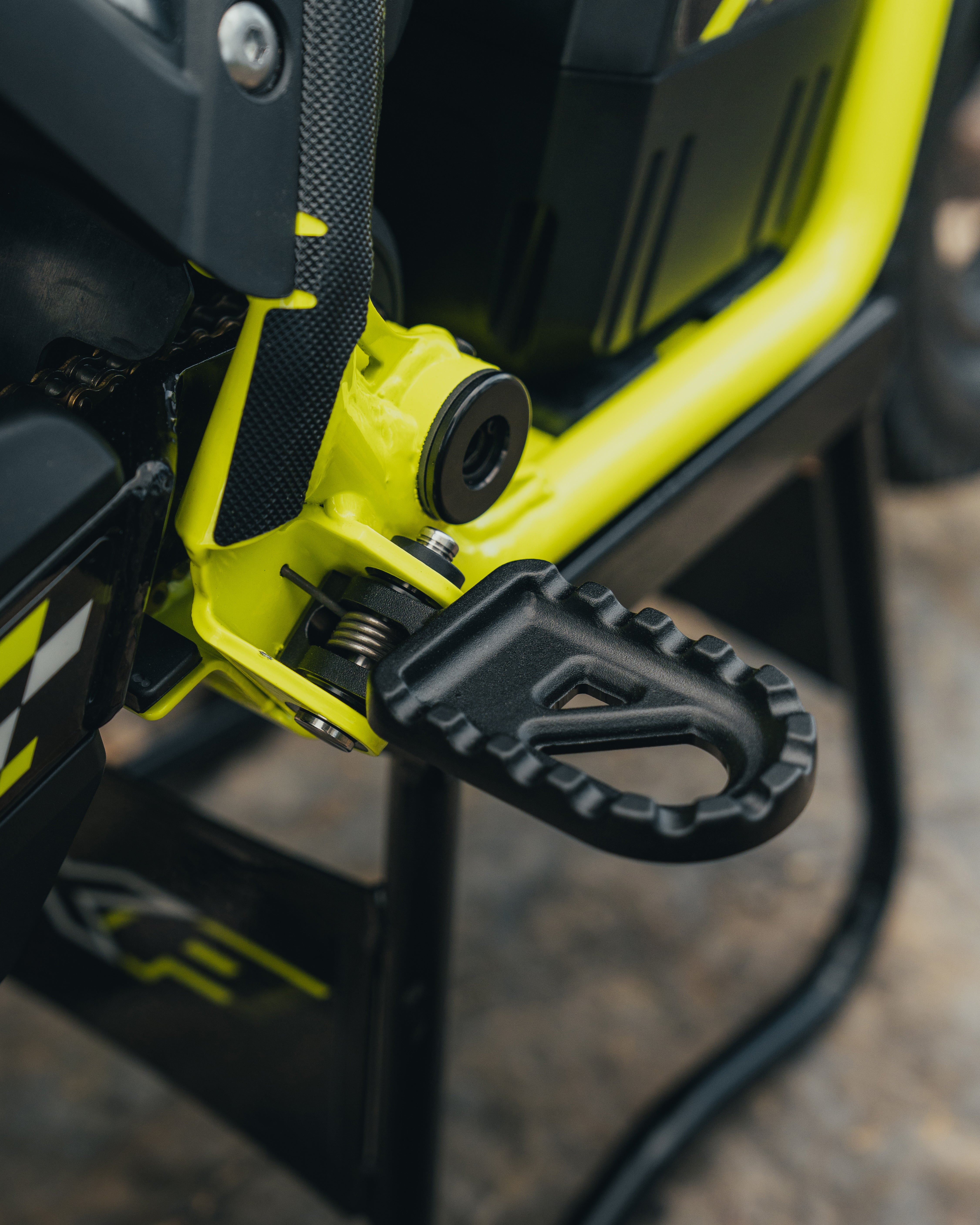 座って走るオフロードスタイルと、立って乗るトライアルスタイルを切り替えられる独自の2in1モジュラーデザイン。