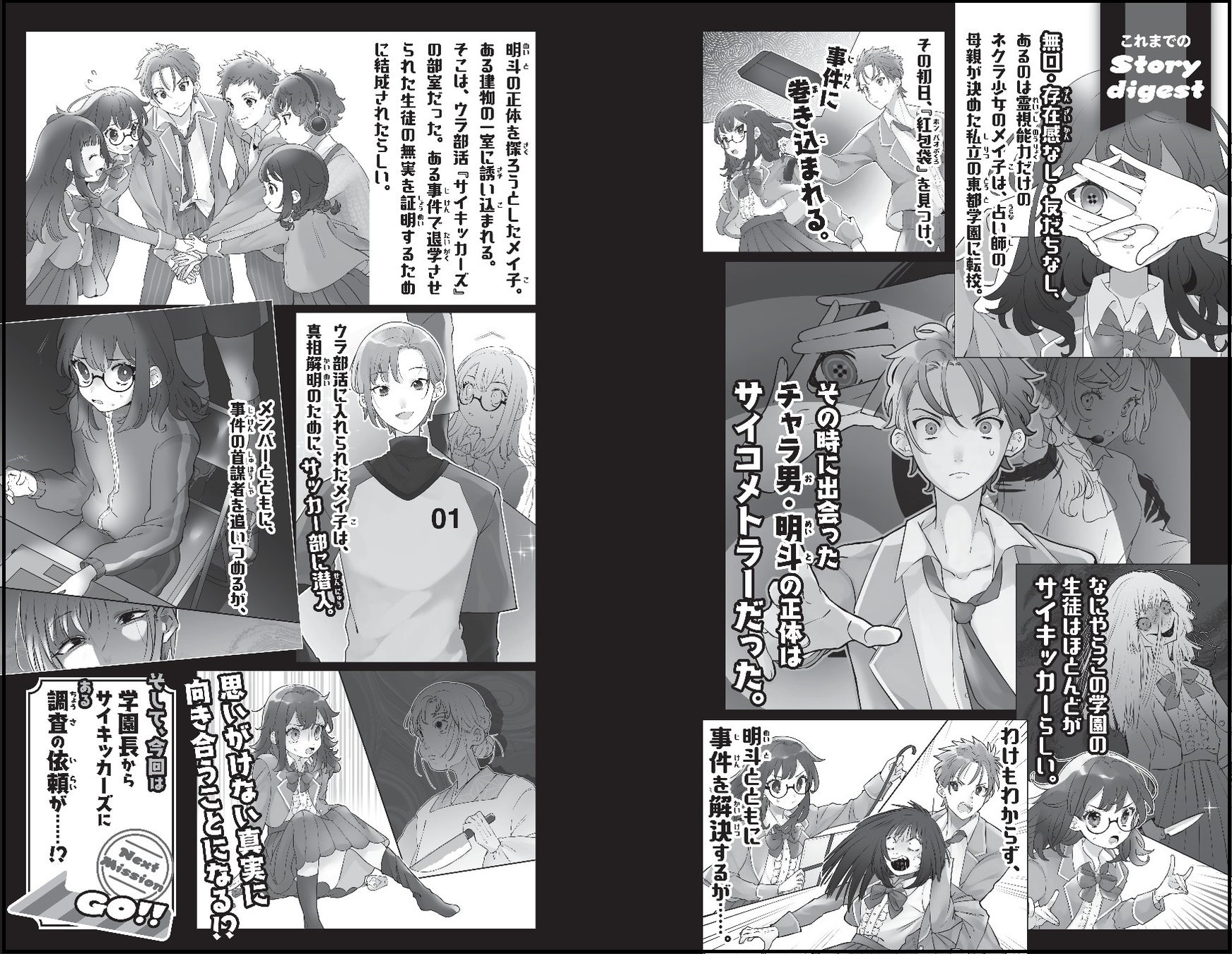 西塔明斗と御船千鶴は親子だった!──衝撃のラストの続きから、第2巻は幕を開ける。事件は解決し、その後、サイキッカーズは、学園長から正式に学園内の調査を依頼される。明斗はひとり反発するが、多数決によって調査を開始することに……。そして、モヤモヤ気分のメイ子の前に新たな事件が!? シリーズ第2弾!