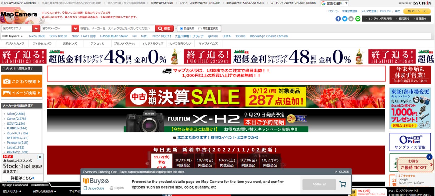 BEENOS株式会社(東証プライム:3328)の連結子会社で、海外向け購入サポートサービス「Buyee(バイイー) https://buyee.jp/」を運営するtenso株式会社(以下「tenso」)は、シュッピン株式会社(本社: 東京都新宿区、代表取締役社長CEO :小野 尚彦、以下シュッピン)が運営するECショップ「Map Camera」(URL:https://www.mapcamera.com/ ) 、「GMT」 (URL: https://www.gmt-j.com/ )「BRILLER」(URL: https://www.briller-gmt.com/ )「KINGDOM NOTE」(URL: https://www.kingdomnote.com/ )、「CROWN GEARS」 (URL:https://www.crowngears.com/ )の海外向け販売のサポートを開始しました。