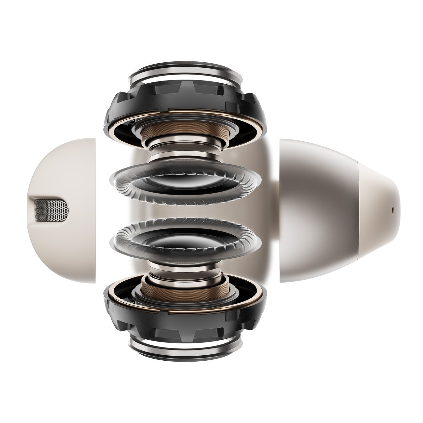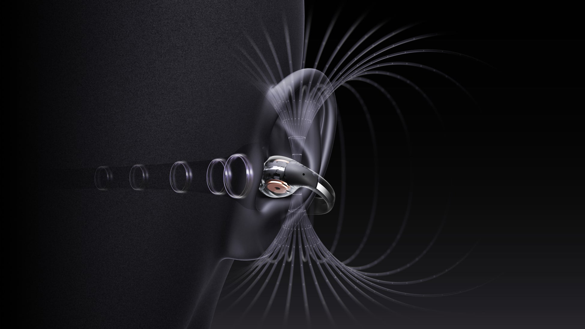 スピーカーとバッテリーコンパートメントを繋ぐ部品であるJointArc™は、超薄型で柔軟なチタン合金で作られており、耐久性に優れ、小さな耳にも大きな耳にも快適にフィットします。さらに、肌触りの良いシリコンコーティングが摩擦力を高め、適度なクッション性と軽さで、まるで何も付けていないような快適さを提供します。