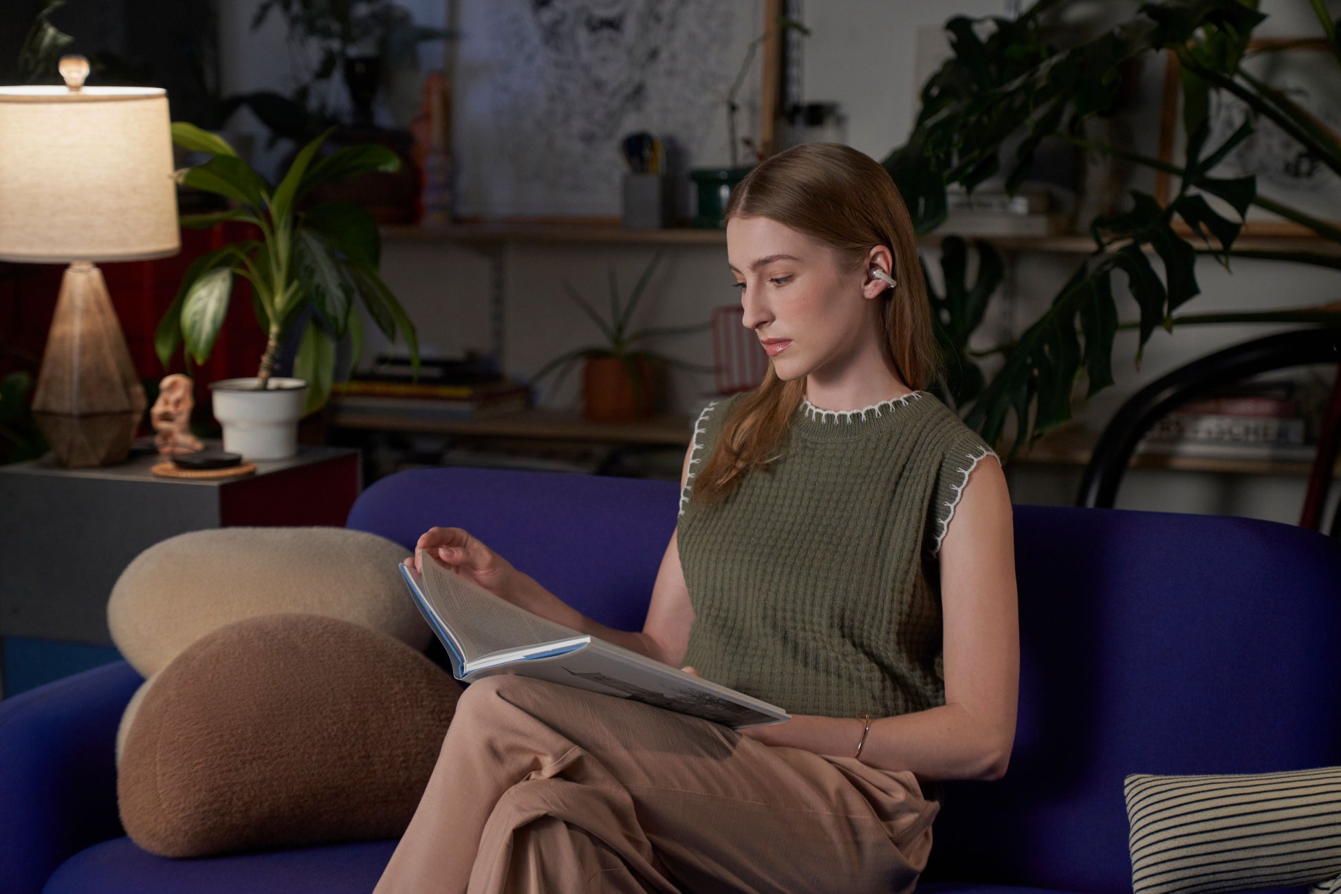 イヤーカフ形状により、耳に負担をかけず、アクセサリーに干渉することなく、お気に入りのサングラスや帽子、キャップなどと併用可能です。ベッドやソファの上など日常生活において、完全な快適さとしっかりしたフィット感を体験いただけます。