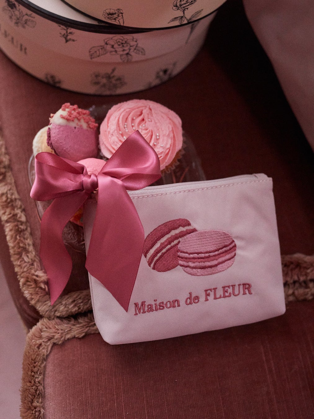 そのほかにも、スウィーツの大胆な刺繍が目を引くポーチや巾着、バッグ、マカロンなどのプリント生地に小花柄をプラスした、特別仕様のバッグやポーチを取り揃えました。
