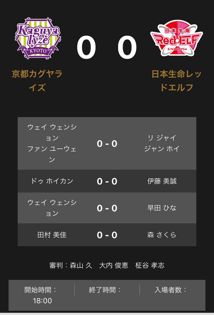 ノジマTリーグ 2022-2023シーズン 公式戦 9月23日開催 京都カグヤライズ vs 日本生命レッドエルフ オーダー発表
