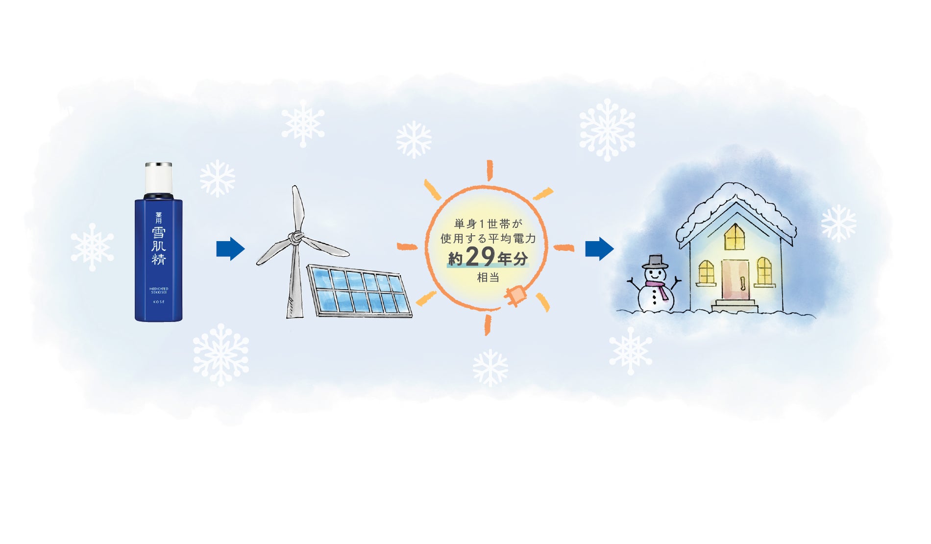キャンペーン期間中に『雪肌精』の対象商品をお買い上げいただくと、その売上の一部がHakuba Valleyで使用される電力の再生可能エネルギーへの切り替えに活かされ、“雪を守る”ことにつながります。