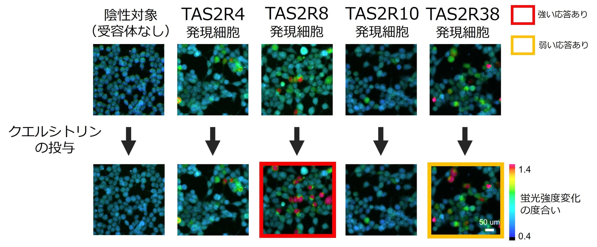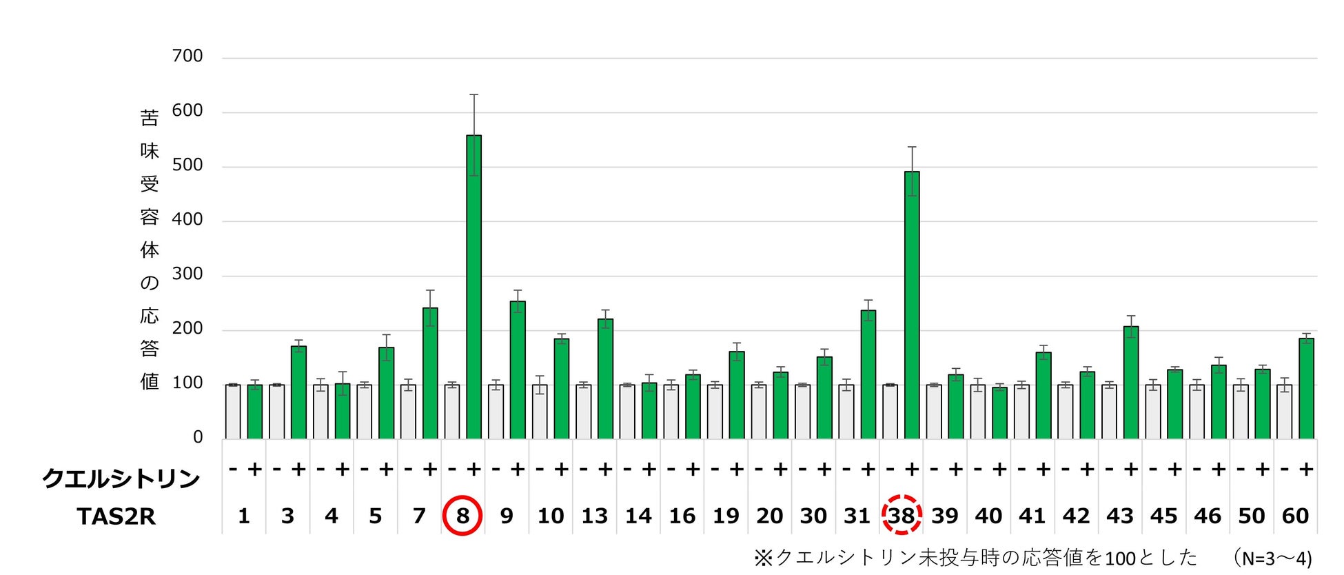 複数のヒト苦味受容体でクエルシトリンに対する応答が確認され、中でも受容体「TAS2R8」の応答感度が高いことが示唆されました。