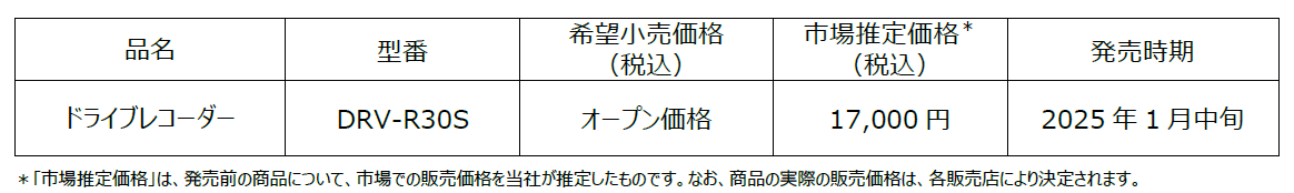 製品ページ:https://www.kenwood.com/jp/car/drive-recorders/products/drv-r30s/