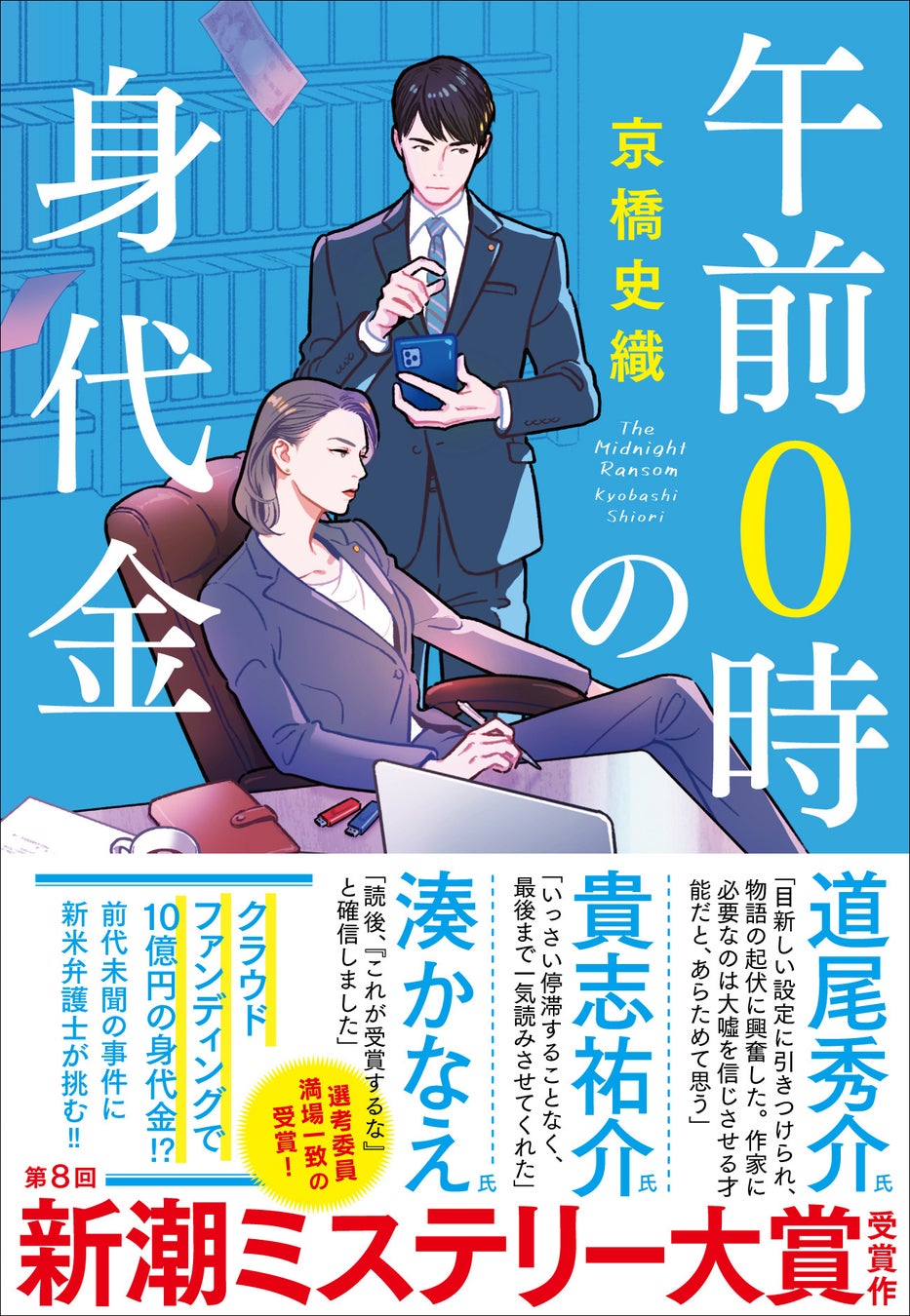 貴志祐介、道尾秀介、湊かなえの三氏による選考で満場一致の受賞となった第8回新潮ミステリー大賞受賞作・京橋史織『午前0時の身代金』が、デビュー作としては異例の発売4日で重版決定!