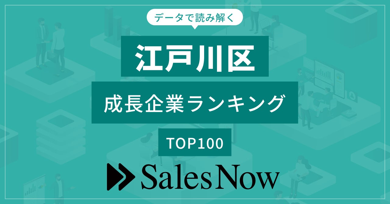 「誰もが活躍できる仕組みをつくる。」をミッションに掲げ、セールスチームの武器となるデータベース「SalesNow」を展開する株式会社SalesNow(本社:東京都渋谷区、代表取締役:村岡功規、以下「SalesNow」)は、国内540万社の企業情報を完全網羅した日本最大級のデータベース「SalesNow DB」より、江戸川区に本社を置く企業の成長企業ランキングTOP100を調査しました。