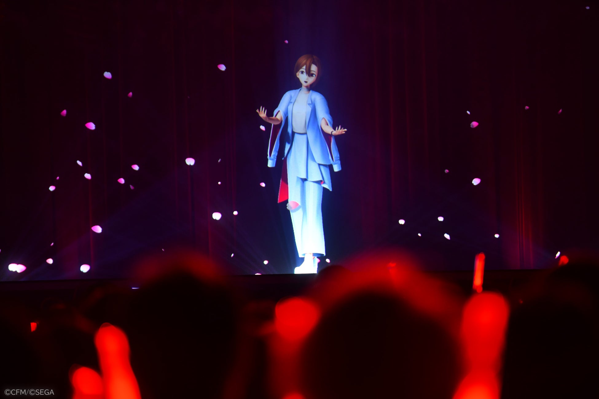 初音ミクは、米山舞さんが手がけた本ツアーのメインビジュアルの衣装に身を包んで登場。歌とダンスのパフォーマンスで会場に笑顔の花を咲かせました。