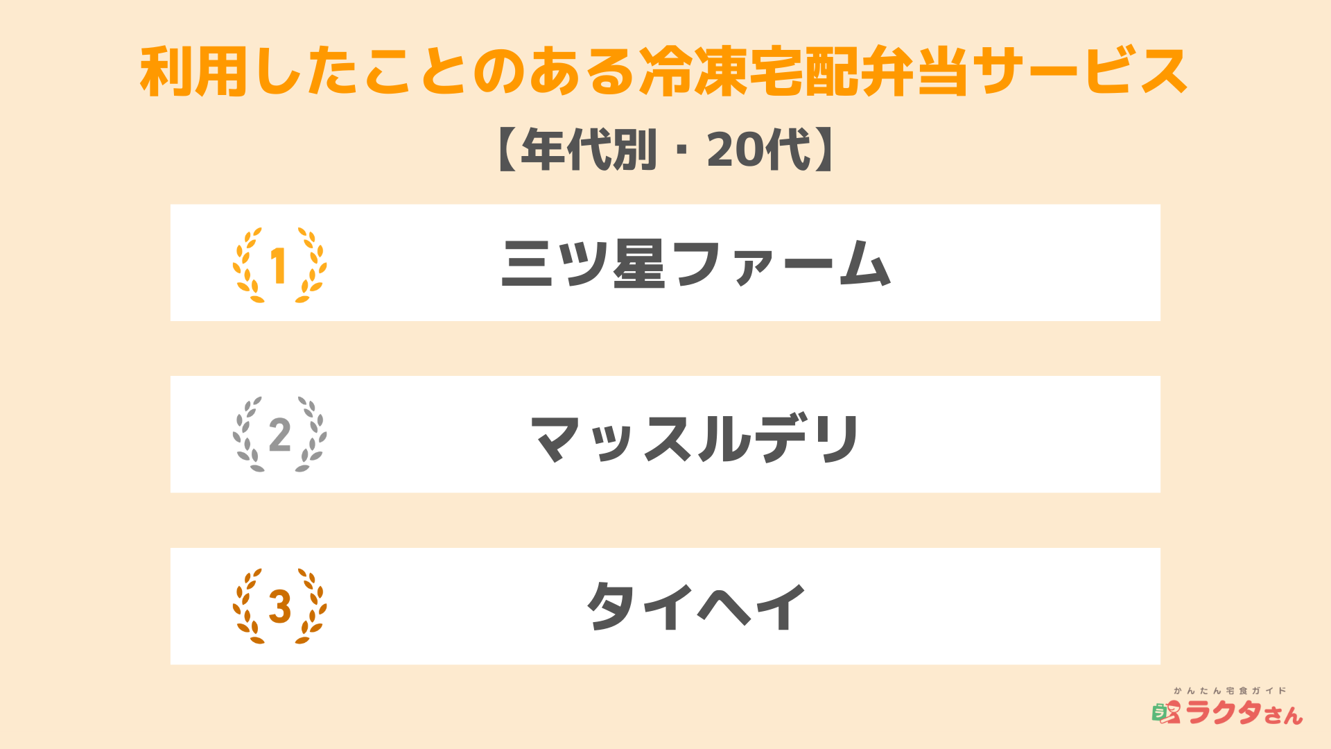 ■20代が利用している割合が高いサービス1位は「三ツ星ファーム」