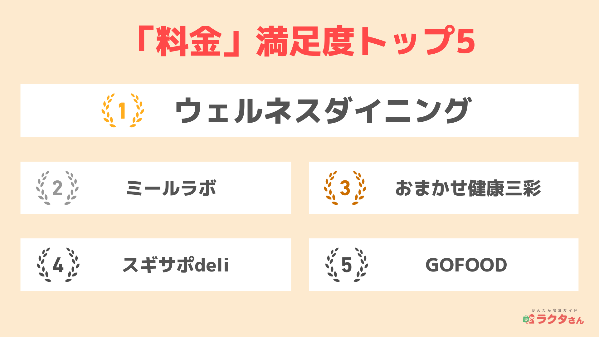 料金の満足度1位にランクインしたのは、メニューの豊富さでも1位だった「ウェルネスダイニング」でした。