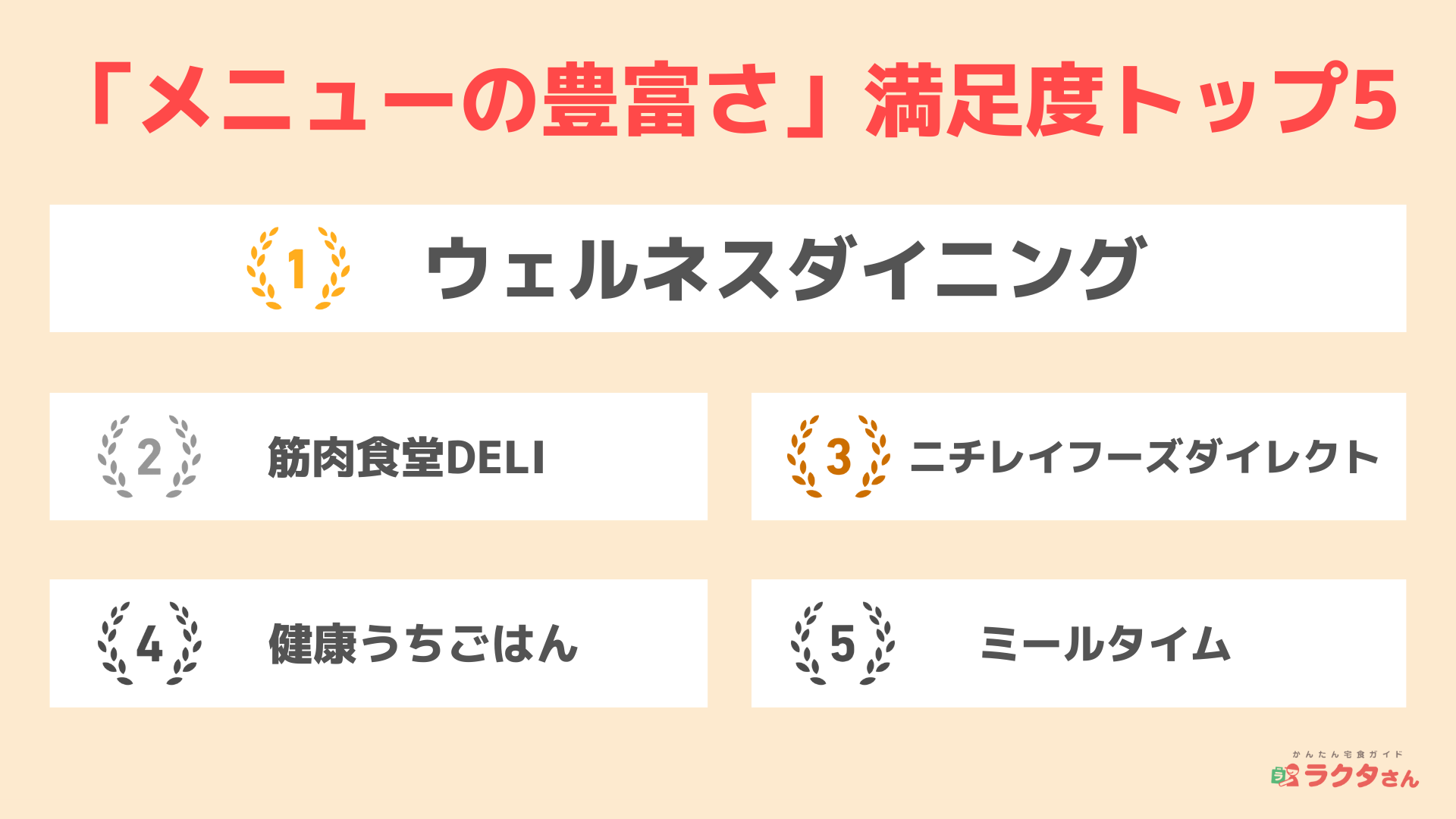 メニューの豊富さ満足度No.1は「ウェルネスダイニング」