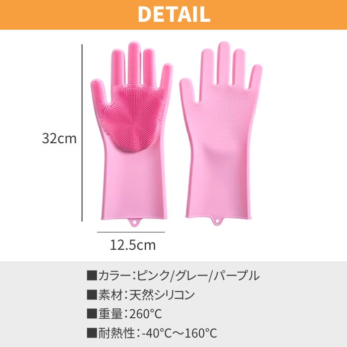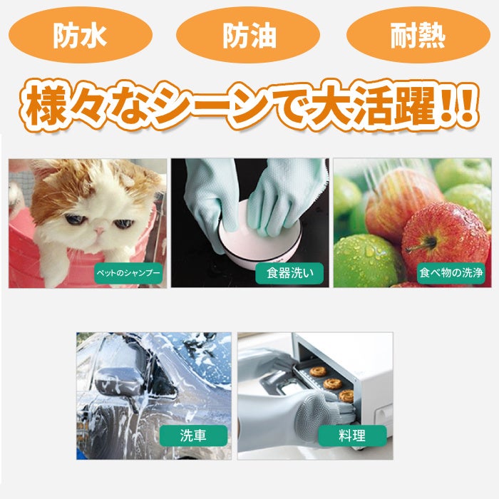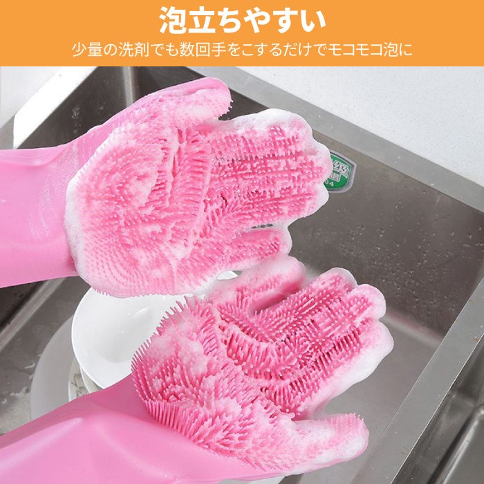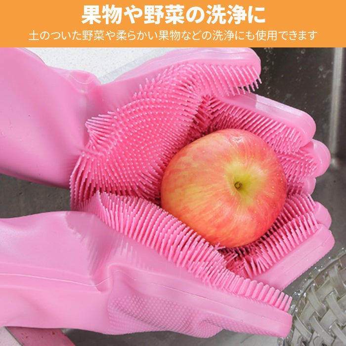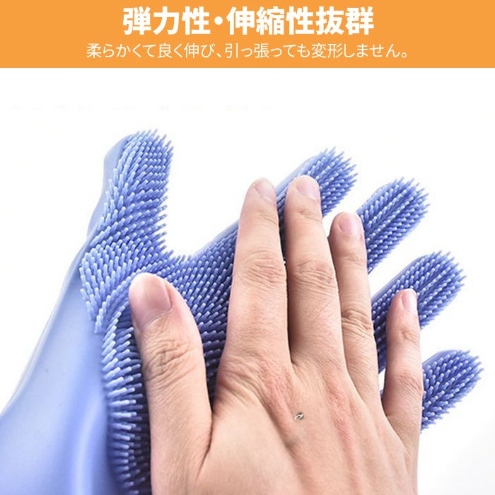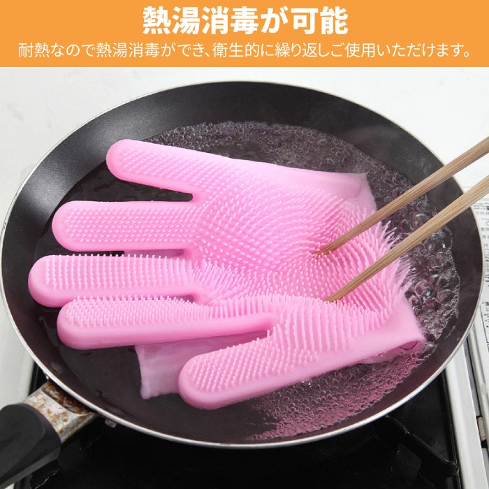 ・掌と指の部分に厚いシリコン製のキッチンブラシが付き、どんな汚れも簡単に取れます。