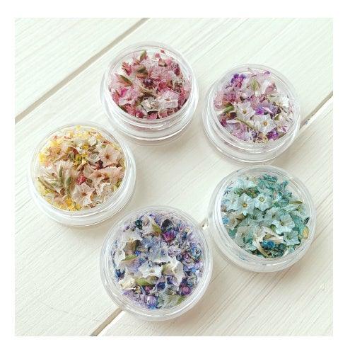 スターチスが主役のかわいいフラワーパーツで、アクセサリーだけでなくネイルにも活用できます。
