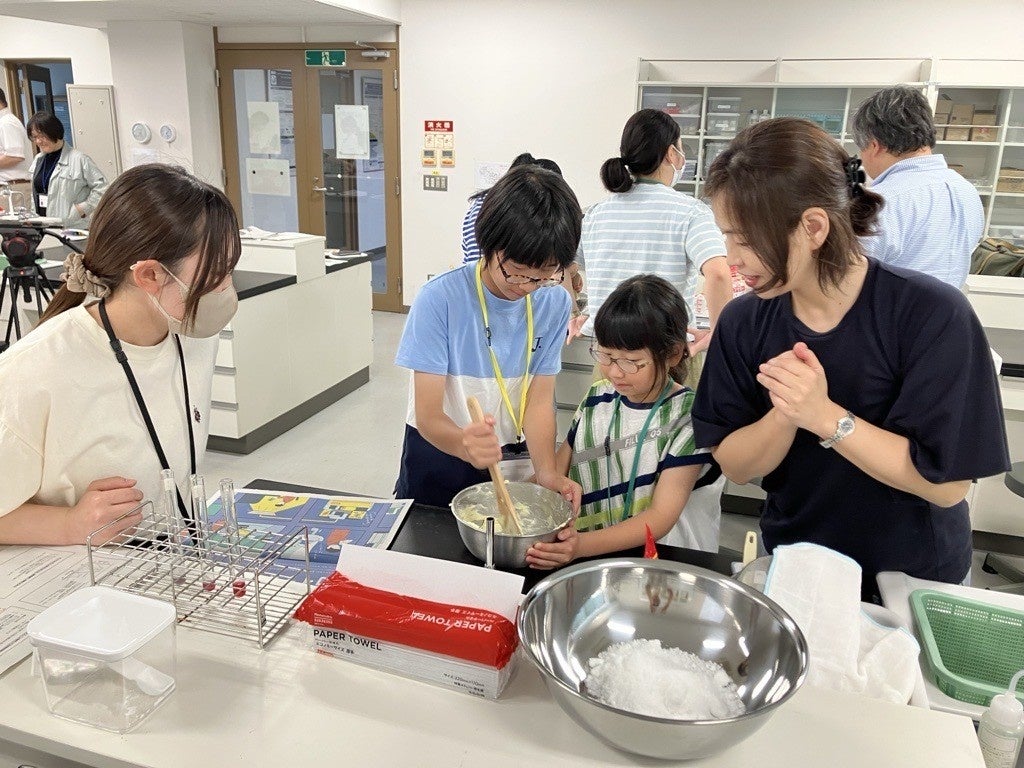 参加した方々は、出来上がったカップケーキで、色の違い、膨らみ方の変化、味の違いを比較し、アントシアニンの性質を身近な食材を通じて学びました。
